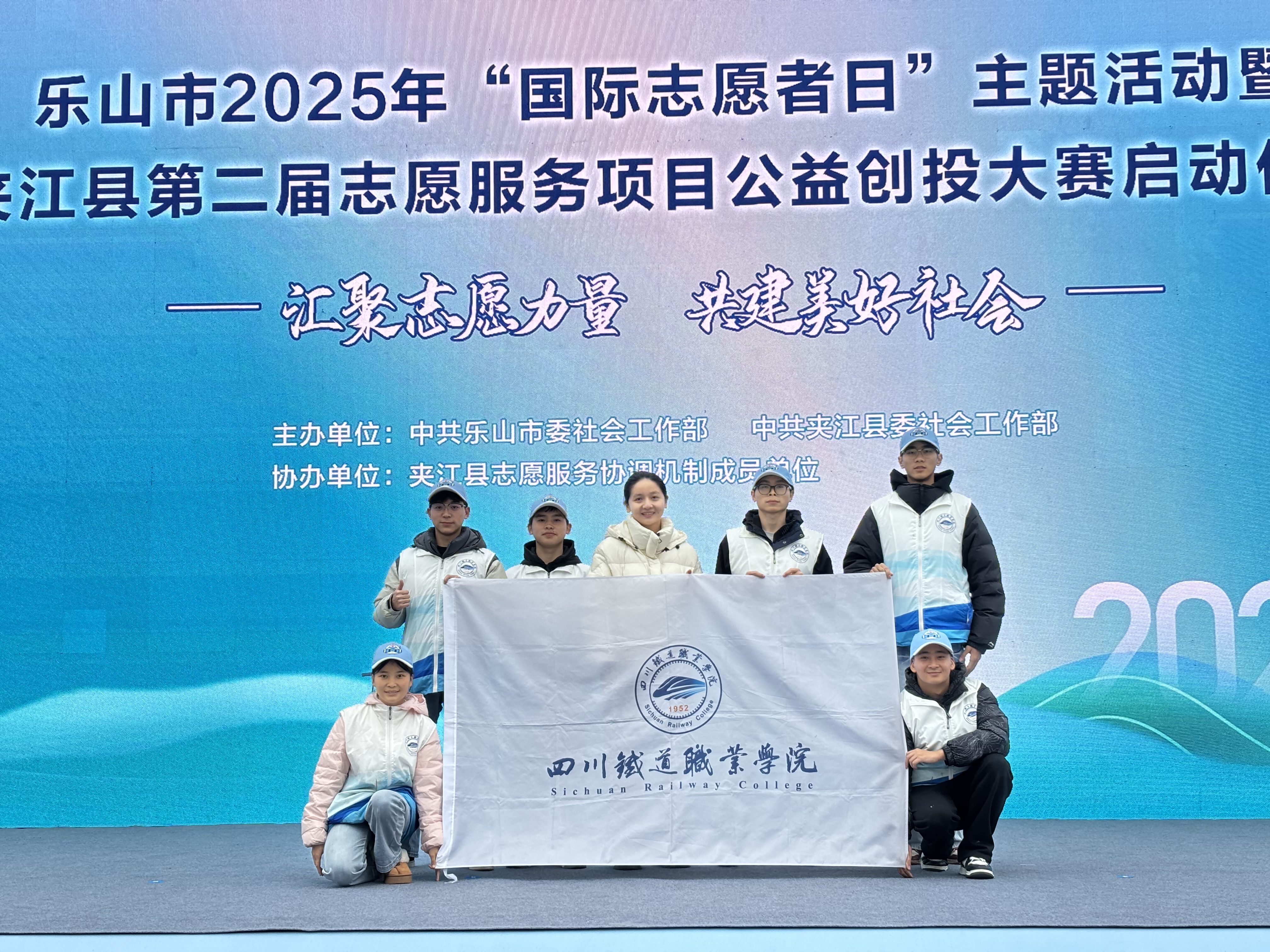 12月3日,在乐山市2025年“国际志愿者日”主题活动启动仪式上,“铁小川”作为吴场镇志愿服务队的重要成员精彩亮相。活动现场,志愿者们发挥专业优势,通过情景模拟、互动问答、案例讲解等通俗易懂的形式,为百余名市民带来一场接地气、有实效的铁路安全科普“微课堂”。他们讲解专业、服务热情,赢得现场群众一致好评,展现出川铁学子扎实的专业素养和强烈的社会责任感。