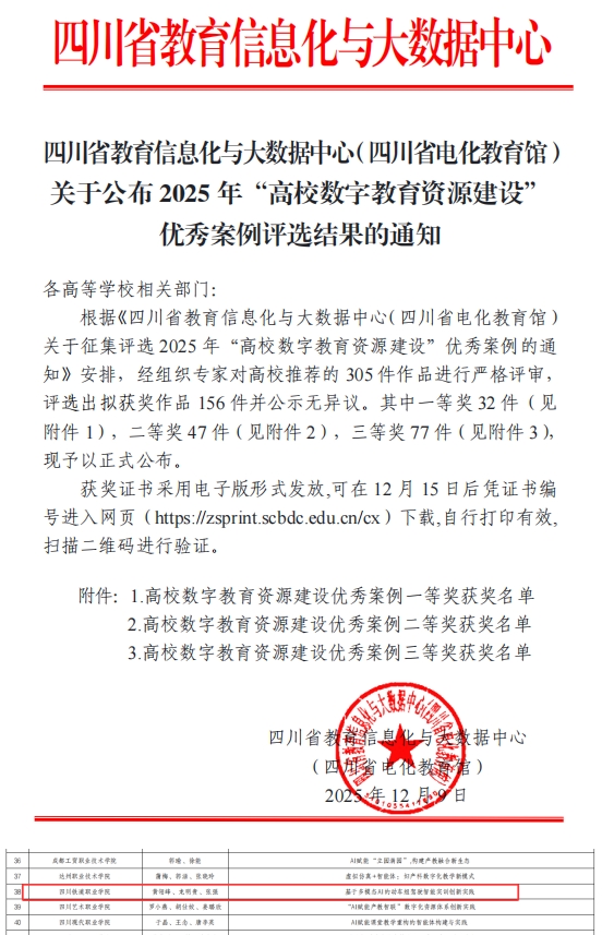 近日,四川省教育信息化与大数据中心正式公布2025年“高校数字教育资源建设”优秀案例评选结果。伟德国际机车车辆学院教师黄翎峰、龙明贵、张强主持申报的《基于多模态AI的动车组驾驶智能实训创新实践》案例,凭借其在人工智能与职业教育深度融合方面的创新性应用和显著实践成效,从众多参评项目中脱颖而出,荣获二等奖。