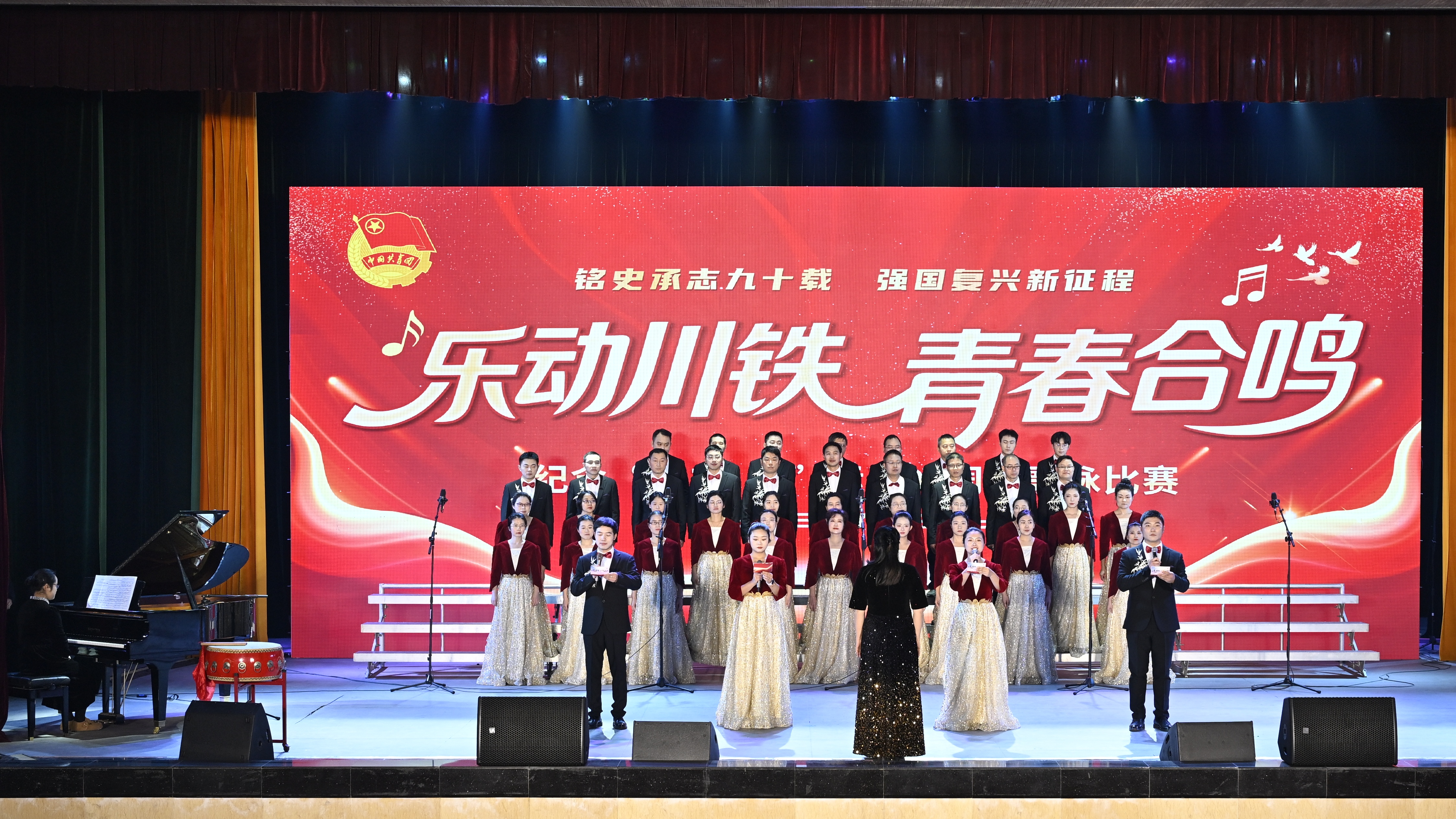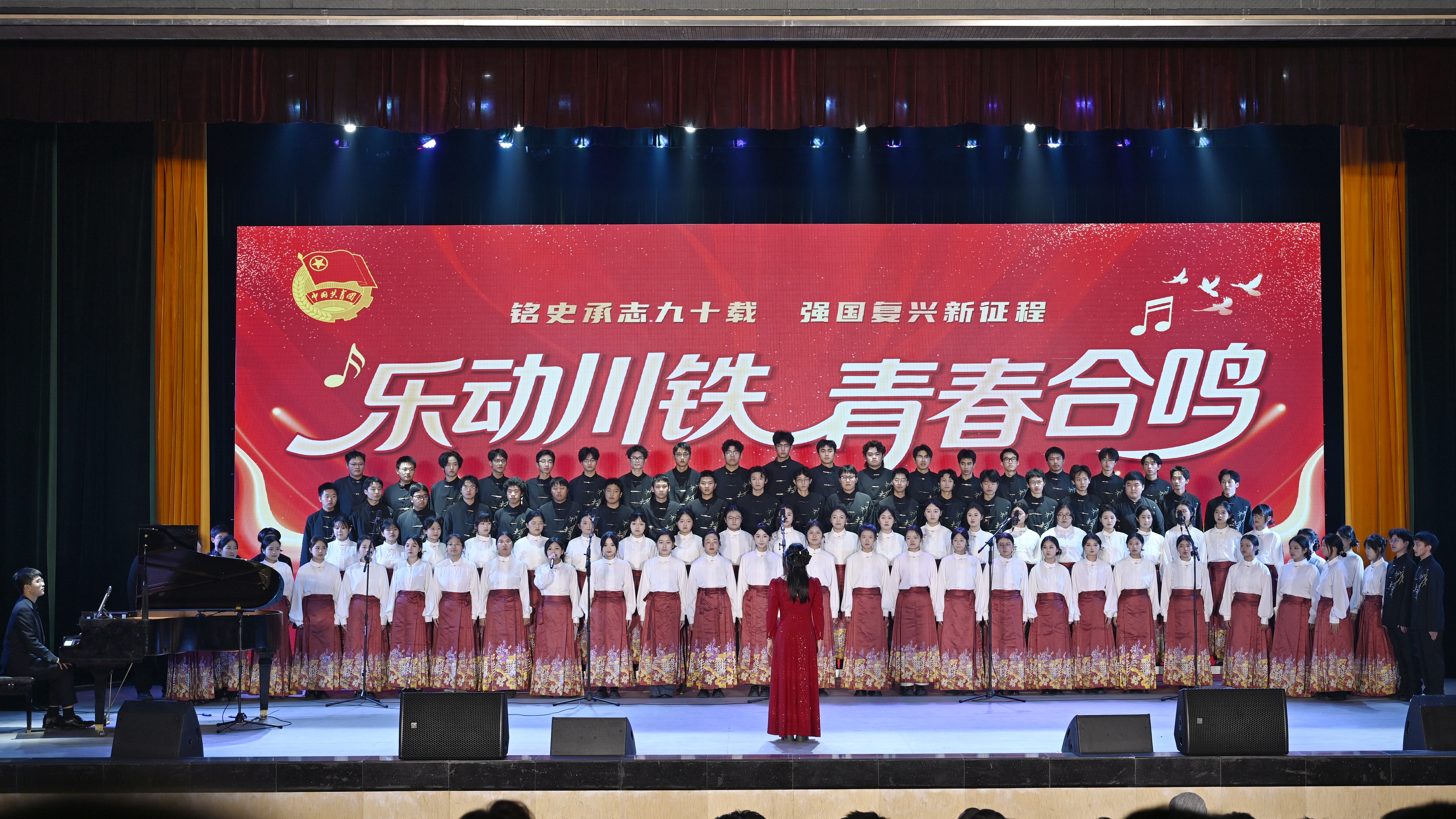 党委委员、副校长代学灵在致辞中深情寄语青年学子:要始终坚定不移听党话、跟党走,在中国共产党的坚强领导下,将爱国情、强国志、报国行自觉融入求学奋斗全过程,涵养“军人气质、大师素质”,传承弘扬伟大抗战精神,在交通强国建设的火热实践中踔厉奋发、勇毅前行,以青春之我、奋斗之我,为以中国式现代化全面推进中华民族伟大复兴贡献智慧与力量! 比赛在电信工程学院分工会合唱团饱含深情的演唱中拉开帷幕。随后,各二级学院代表队依次登台,以饱满的热情、昂扬的姿态,将对祖国的热爱、对理想的追求融入铿锵旋律,唱响川铁青年的使命担当,展现新时代学子不负韶华、砥砺奋进的精神风貌。