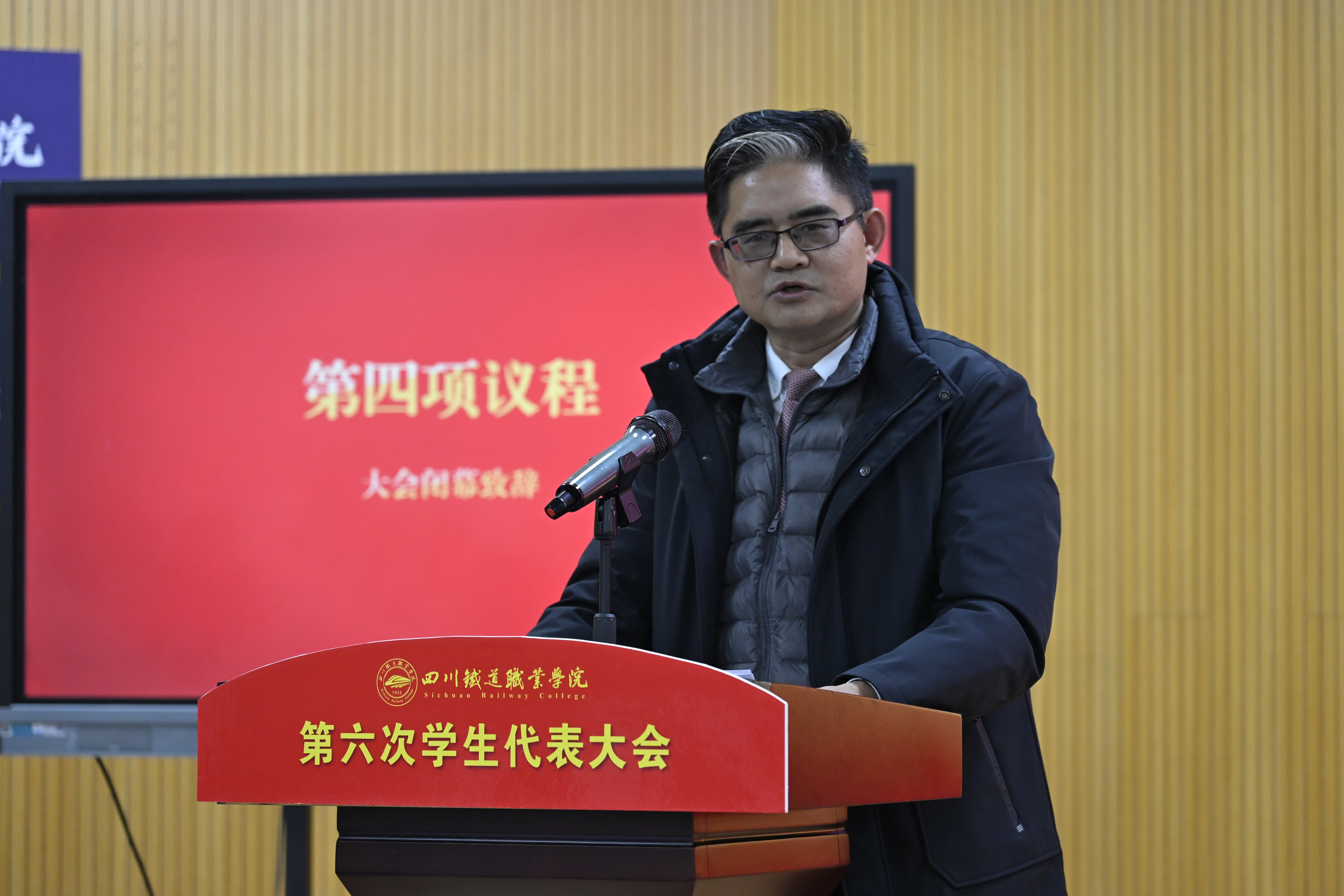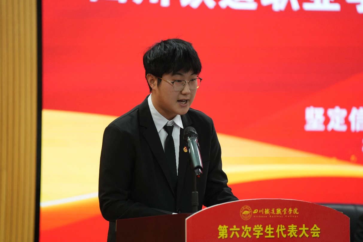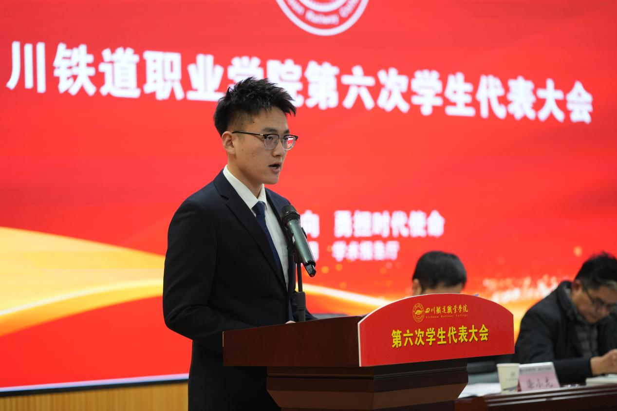 代学灵代表学校党委向大会的召开表示热烈祝贺。他高度评价了第五届学生会在思想引领、学风建设、校园文化、服务保障等方面取得的扎实成效,并对全校青年学子提出三点希望:一要铸魂增智,做信念坚定的“川铁青年”;二要精技强能,做本领过硬的“行业尖兵”;三要服务奉献,做同学信赖的“青春使者”。他勉励广大青年以奋斗姿态激扬青春,在团结奋进建设国内一流高职院校的新征程上绽放绚丽之花。