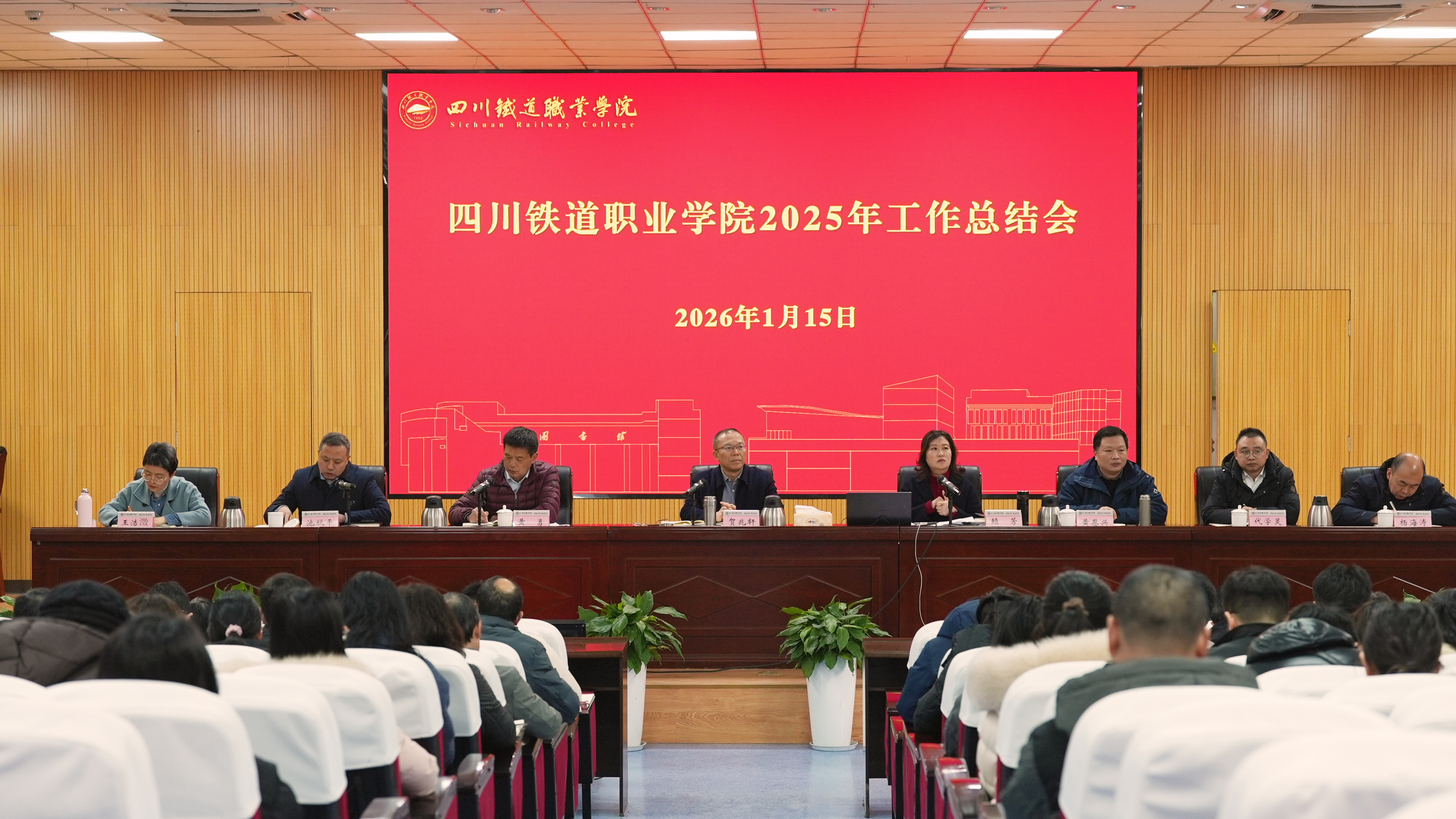 会上,机车车辆学院、城市轨道交通学院、铁道工电学院、电信工程学院、经济管理学院、人工智能工程学院、马克思主义学院、公共教学部及内江校区管委会等9个教学单位负责人依次汇报了本单位2025年工作进展与亮点,并就2026年工作思路与重点举措作了交流。 纪委书记池秋平围绕强化政治监督,回顾了一年来学校纪委在深化系统整治、开展专项监督、一体推进“不敢腐、不能腐、不想腐”机制建设以及加强纪检队伍自身建设等方面取得的成效。结合学习贯彻二十届中央纪委五次全会精神,他对2026年重点工作作出部署,强调要推动监督常态长效化,精准防控重点领域廉洁风险,持续营造风清气正的政治生态。 校长赖芳以《筑牢基本盘、抓住新机遇、创造新未来》为题作专题报告。她从党建引领、人才培养、产教融合、“五金”建设、内部治理等方面,全面梳理了学校2025年取得的主要成绩。同时,对标“双高计划”建设目标,她深刻剖析了当前在标志性成果培育、干部与师资队伍建设、绩效考核评价机制等方面存在的短板与不足。赖芳强调,2026年要抢抓战略机遇,坚定信心、迎难而上,在巩固既有优势基础上积极开拓新路径,重点聚焦深化改革、现代治理能力提升和高水平对外开放,奋力推动学校事业再上新台阶。 党委书记贺兆轩充分肯定了2025年全校上下团结奋进所取得的扎实成效。他指出,面对新质生产力加速演进、新一轮“升本潮”带来的激烈竞争以及自身发展中的瓶颈问题,全校上下必须增强推动高质量发展的紧迫感、危机感、责任感和使命感。他强调,要深刻把握大局大势,主动适应高质、新质发展要求;要夯实基础、拓展格局,全力冲刺“新双高”建设和职教本科创建目标;要系统推进教学、科研、职称评聘、绩效分配、二级管理等深层次改革,充分释放发展潜能;要着力加强干部队伍建设,全面提升政治能力、战略谋划能力、执行落实能力和协同作战能力;要统筹发展与安全,坚决守牢政治安全、校园安全和廉洁自律底线。他要求,要把改革创新的“势能”、因地制宜的“特色”、投资于人的“效能”切实转化为推动高质量发展的“实效”,奋力书写学校新时代高质量发展的崭新篇章!