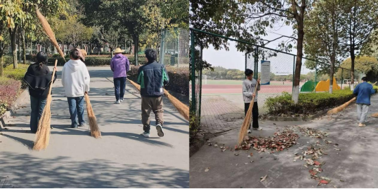 次日,实践团队前往校园各公共区域开展志愿服务。面对初春残留的枯叶与同学们遗留的杂物,志愿者们毫无怨言,分组包干清理绿化带、擦拭公共设施。