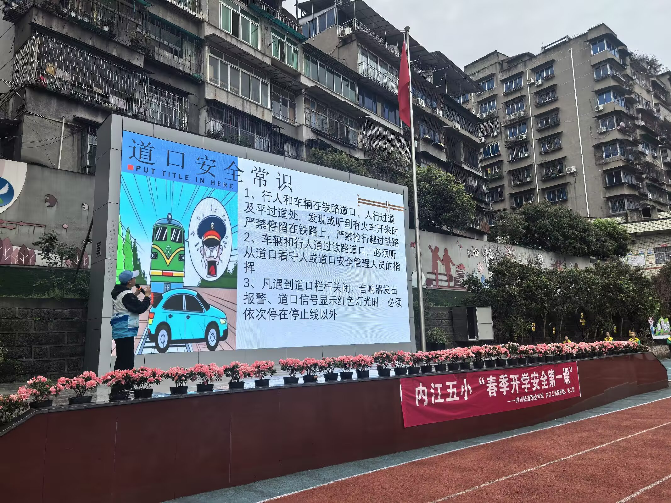 为筑牢校园安全防线,增强师生铁路安全意识,3月9日,“铁小川”宣讲团走进内江市第五小学,开展春季铁路安全“开学第一课”主题宣讲活动。宣讲团结合小学生认知特点,围绕铁路安全基本知识、沿线危险行为、爱路护路意义等核心内容展开讲解,让铁路安全的“大道理”通过“小课堂”入脑入心,为平安铁路建设注入源源不断的青春力量。