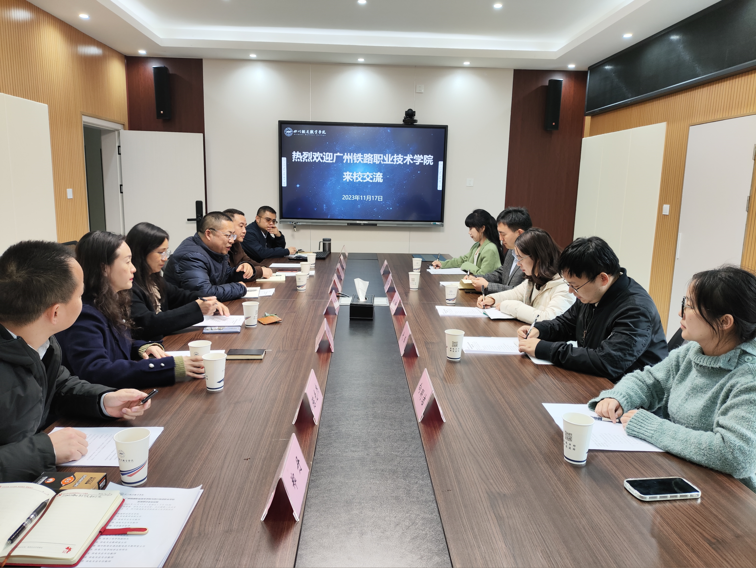2023年11月17日下午,广州铁路职业技术学院供电专业教研室副主任杨琦、教学秘书彭子珊、辅导员向明洁、专任教师何东升及代锋等五人到伟德国际开展交流研讨,会议在第二会议室进行,铁道工电学院院长王立、副院长董浩、供电教研室主任唐玫、城轨供电教研室主任汪琪、学院学生科科长陈光杰等领导老师参加了座谈。