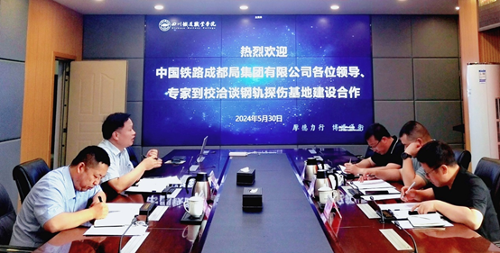 5月30日上午,中国铁路成都局集团有限公司职工培训部副部长刘明、工务部副部长吕元博、钢轨管理中心主任唐军一行来伟德国际洽谈钢轨探伤基地共建项目合作,会议在第五会议室进行,副校长黄恩兴、铁道工电学院院长王立参会。