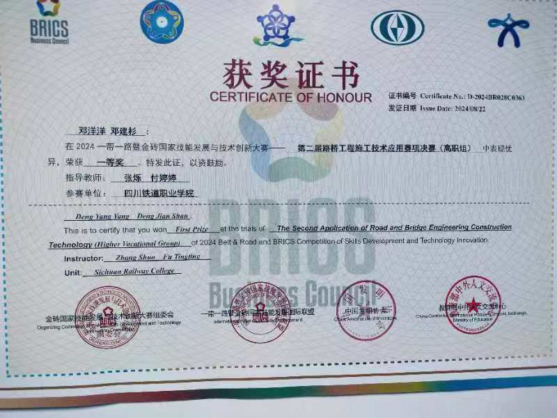 伟德国际铁道工电学院师生在此次大赛中表现出色,取得了优异的成绩。铁道工程技术专业22T3班邓洋洋和23T2班邓建杉凭借扎实的专业技能和出色的团队协作能力荣获学生组一等奖。同时,伟德国际英国荣获最佳组织奖,指导教师获得优秀指导教师奖。