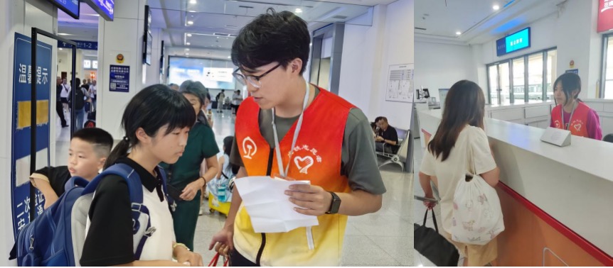 志愿者于2024年7月在成都东站、成都西站、天府机场站、犀浦站开展志愿服务活动。同学们上岗之后,认真履行自身义务,为旅客们答疑解惑,维护车站秩序。暑运期间,成都东西站客流高位运行。为了让市民、旅客放心出行,志愿者们在各点位开展引导咨询、秩序维护、便民服务、应急救援等暖心服务,用行动温暖旅客出行之路。