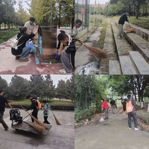 在操场上,第一小组的新生们迅速进入状态,他们分工明确,清扫跑道、捡起散落的垃圾,汗水沿着脸颊滑落,却丝毫没有减缓他们手中的动作。操场在他们的努力下,逐渐恢复了应有的整洁与活力。垃圾桶周边,第二小组的同学们展现了极高的责任心与细致入微的工作态度。他们不仅清理了垃圾桶内外的垃圾,还细心地对桶身进行了擦拭消毒,确保这一公共设施的卫生与安全。在劳动中,他们相互协作,整个流程井然有序。绿化带内,第三与第四小组的新生们则投身于一场与自然对话的劳动中。他们手持垃圾钳与塑料袋,穿梭在树丛与草坪间,小心翼翼地捡拾着每一片落叶,修剪着参差不齐的枝条。尽管任务繁重,但他们脸上始终洋溢着笑容,享受着劳动带来的乐趣与成就感。