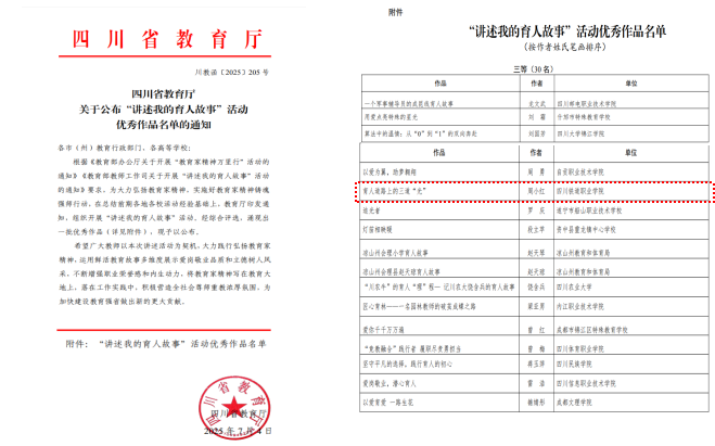 近日,四川省教育厅正式公布了“讲述我的育人故事”活动优秀作品获奖名单,伟德国际英国铁道工电学院教师周小红的作品《育人道路上的三道“光”》荣获三等奖。该作品凭借真挚情感与深刻教育思考,生动展现了新时代教师的责任担当,在众多参赛作品中脱颖而出。此次活动由四川省教育厅精心组织,积极响应《教育部办公厅关于开展“教育家精神万里行”活动的通知》号召,旨在大力弘扬教育家精神。活动自启动以来,全省各级各类学校教师踊跃参与,投稿作品精彩纷呈。