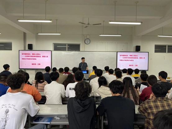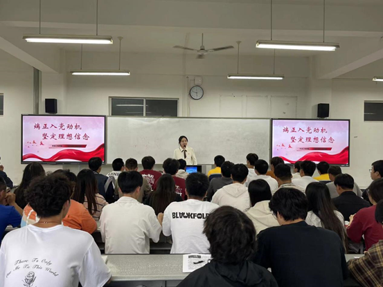 江锋围绕“坚守理想信念,明晰入党初心,以实际行动投身校园安全,展现入党积极分子的责任与担当”主题展开了深入讲解。首先通过消防安全知识为切口,探讨入党积极分子如何在日常生活中践行全心全意为人民服务这一理念。消防安全无小事,关系到每个人的生命财产安全,大学校园作为消防重点单位,入党积极分子不仅要熟知消防知识,掌握基本的火灾预防和应对技能,更要成为寝室室友、同学们的安全宣讲者和守护者,用自己的实际行动去影响他人,让安全意识深入人心,使每个人都成为校园安全的积极参与者和维护者。最后,江锋强调,作为入党积极分子,不仅要坚守自己的理想信念,更要明晰自己的入党初心,始终保持对党的忠诚和对人民的热爱,以更加饱满的热情和更加坚定的信念,为校园的安全稳定贡献自己的力量。