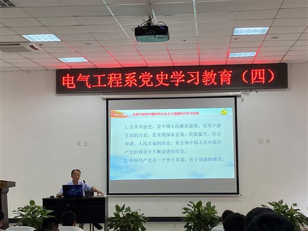 电气工程系于2021年6月2日组织学生在学术报告厅参加讲座(四):改革开放时期。本次讲座由电气工程系主任程波主讲。
