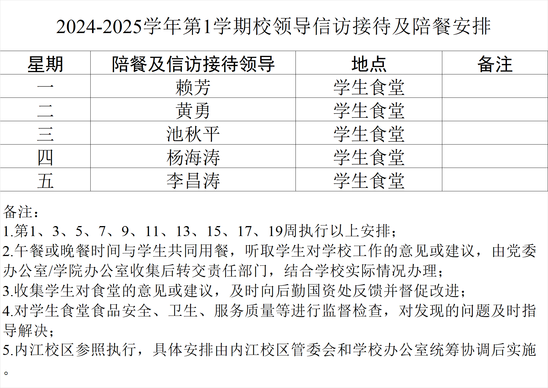 2024-2025学年第1学期校领导信访接待及陪餐安排