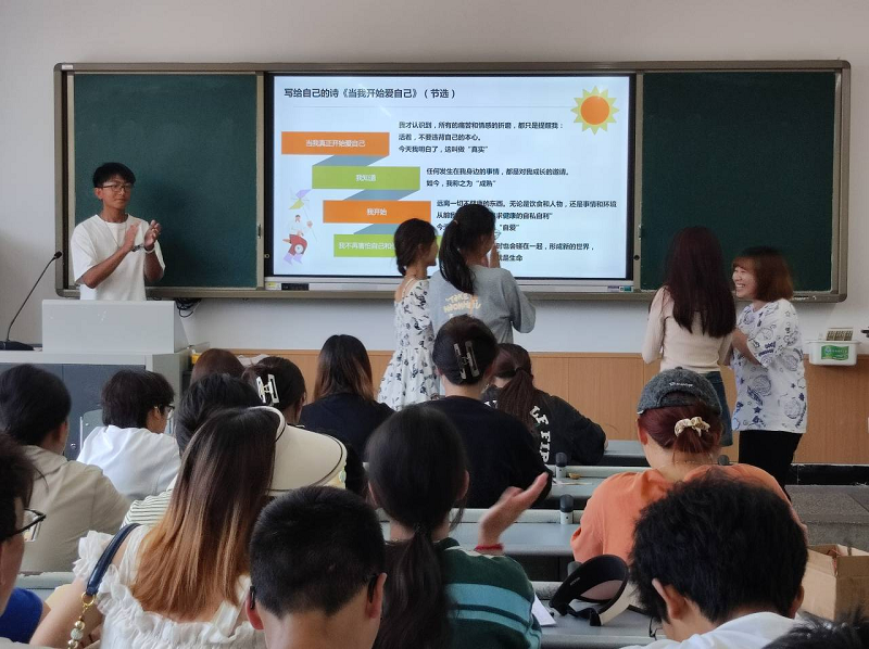 活动采用观看影片、心理拓展活动、小组讨论、美文朗诵、签订珍爱生命承诺书等多种方式,由学院心理负责老师牵头,以班级为单位开展。活动通过播放电影《阿甘正传》精选片段,让同学们感悟“生命就像那空中白色的羽毛,或迎风搏击,或随风飘荡,或翱翔蓝天,或坠入深渊……”,从中探索生命存在的价值和意义。活动中,通过两个心理拓展活动“生命有多长”、“人生倒计时”活动,引发对“生命意义”的讨论,懂得珍惜时间,不为不重要的事情而烦恼,在有限的生命时间里了解自己生命的价值和意义。全体同学一起朗诵了《当我开始爱自己》,并郑重签下珍爱生命承诺书。