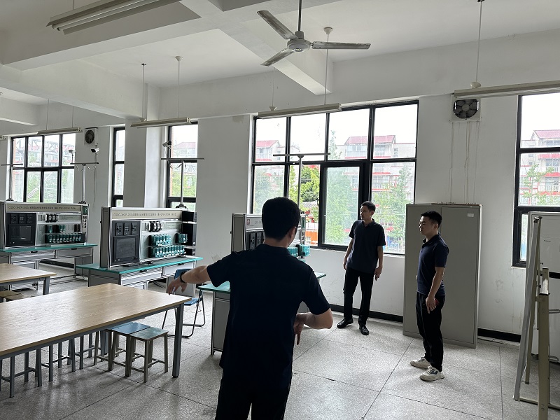 为确保学院暑期安全稳定,进一步提升实训教学质量与安全管理水平,从根源上降低各类风险隐患系数,7月15日,电信工程学院党总支副书记刘奇、副院长漆玉强带队,深入开展暑期前实训室安全检查。本次检查旨在全面、细致地排查实训室中可能存在的安全隐患,为师生打造一个更加安心的实践学习环境。