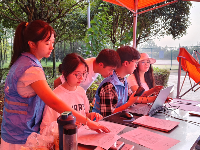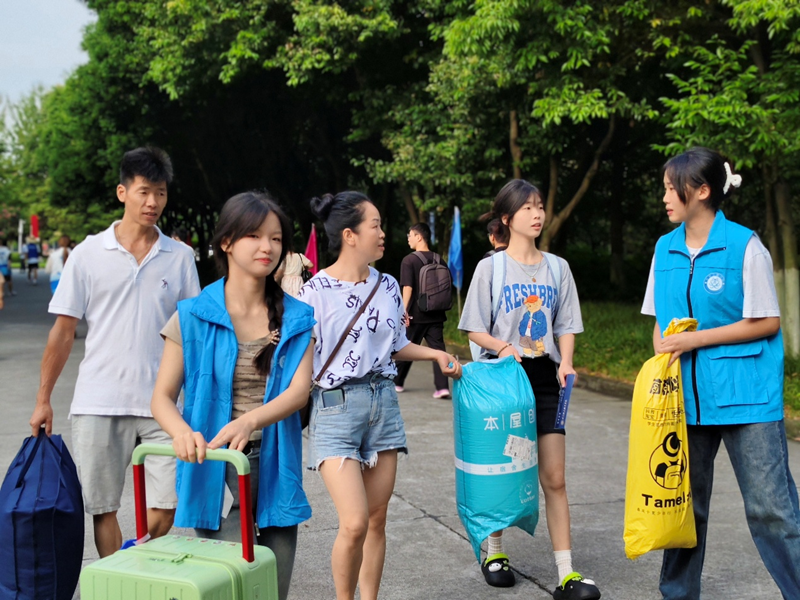 早上八点的迎新现场,学院领导、辅导员、领航学长学姐以及33名志愿者们早早地来到了报到点,如火如荼地展开迎新工作。精心布置的迎新站点洋溢着热烈的氛围,一个个色彩鲜艳的迎新标语和指示牌,为新生和家长们指引着报到的方向。志愿者们统一着装,他们热情地穿梭在校园中,积极主动地帮助新生搬运行李。从校园大道到宿舍,从报到点到各个服务区域,到处都能看到他们忙碌的身影。他们耐心地解答新生和家长们的各种问题,从入学手续的办理流程到校园生活的注意事项,事无巨细地给予关怀与指导。在报到现场,辅导员老师们也坚守岗位,认真地审核新生的入学材料,确保报到工作的高效、有序进行。