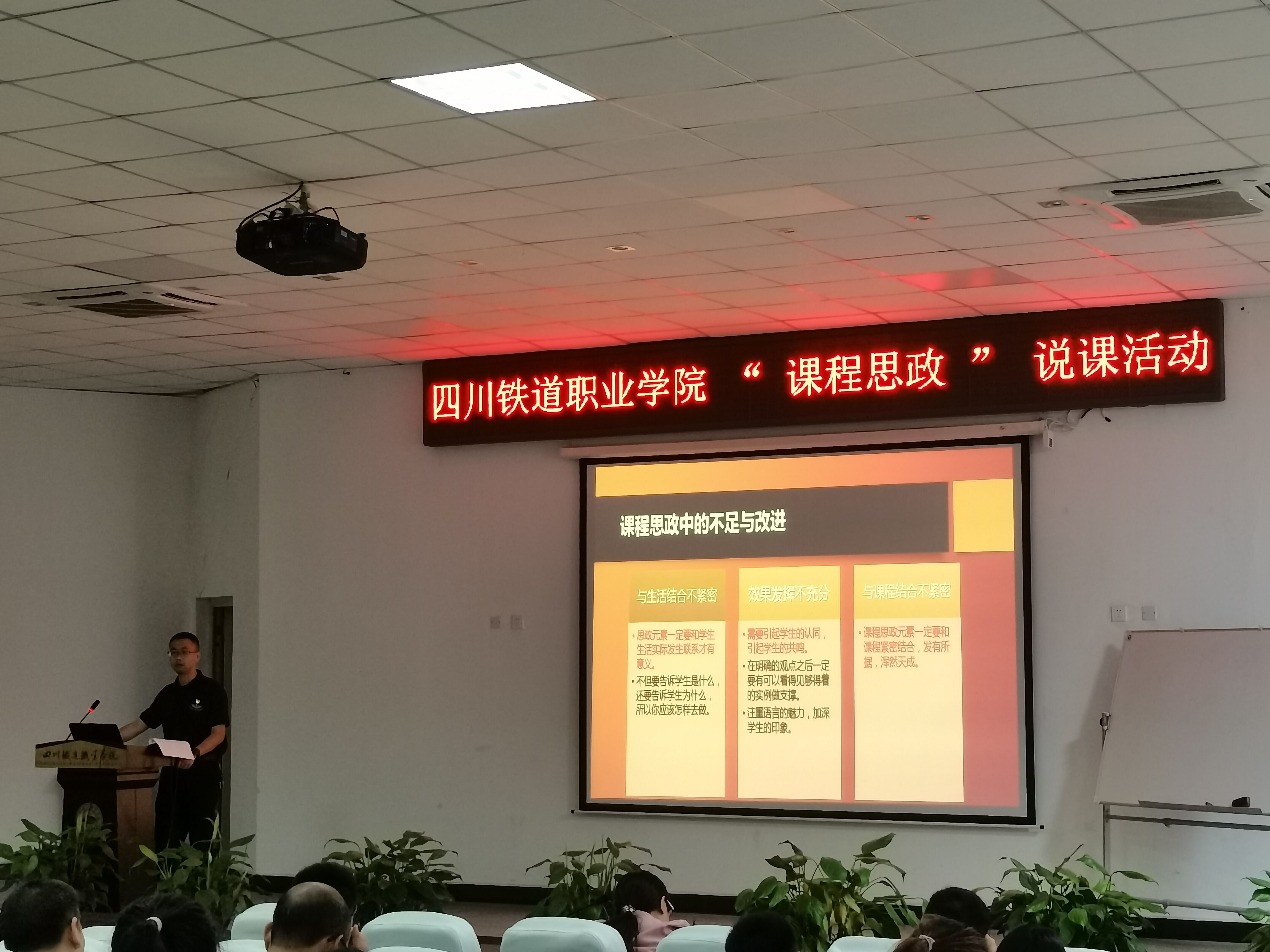 本次“课程思政”说课活动是贯彻落实立德树人根本任务的重要措施,是提高教师队伍课程思政意识的重要渠道,是各类课程交流提升的重要平台。公共教学部将充分发挥各门课程的育人功能,深入挖掘课程思政元素,实现专业教育和思政教育,实现“润物细无声”的思政效果。