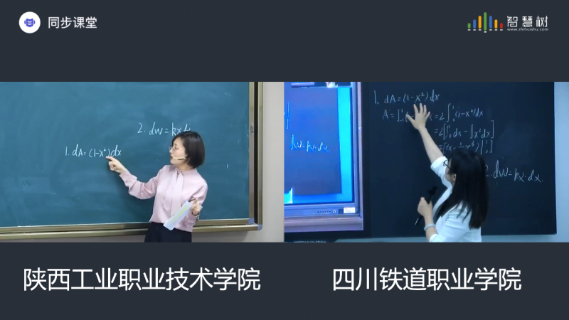 本次同步课堂由陕西工业职业技术学院傅霞老师主讲,前期伟德国际李娟老师与对方课程负责人段瑞老师多次沟通,结合双方授课进度和专业特点,傅霞老师最终将授课内容确定为《定积分的应用》。课堂上,傅老师以高铁变轨时“轨道曲线”为案例引入,介绍了微元法,结合图形总结几何形状通常有条、带、段、环、扇等几种取法,教学内容形象生动。学生积极思考、互动交流,课堂设计了练习环节,两校学生们在云端课堂中,积极分享、讨论热烈,形成了浓厚的课堂氛围。