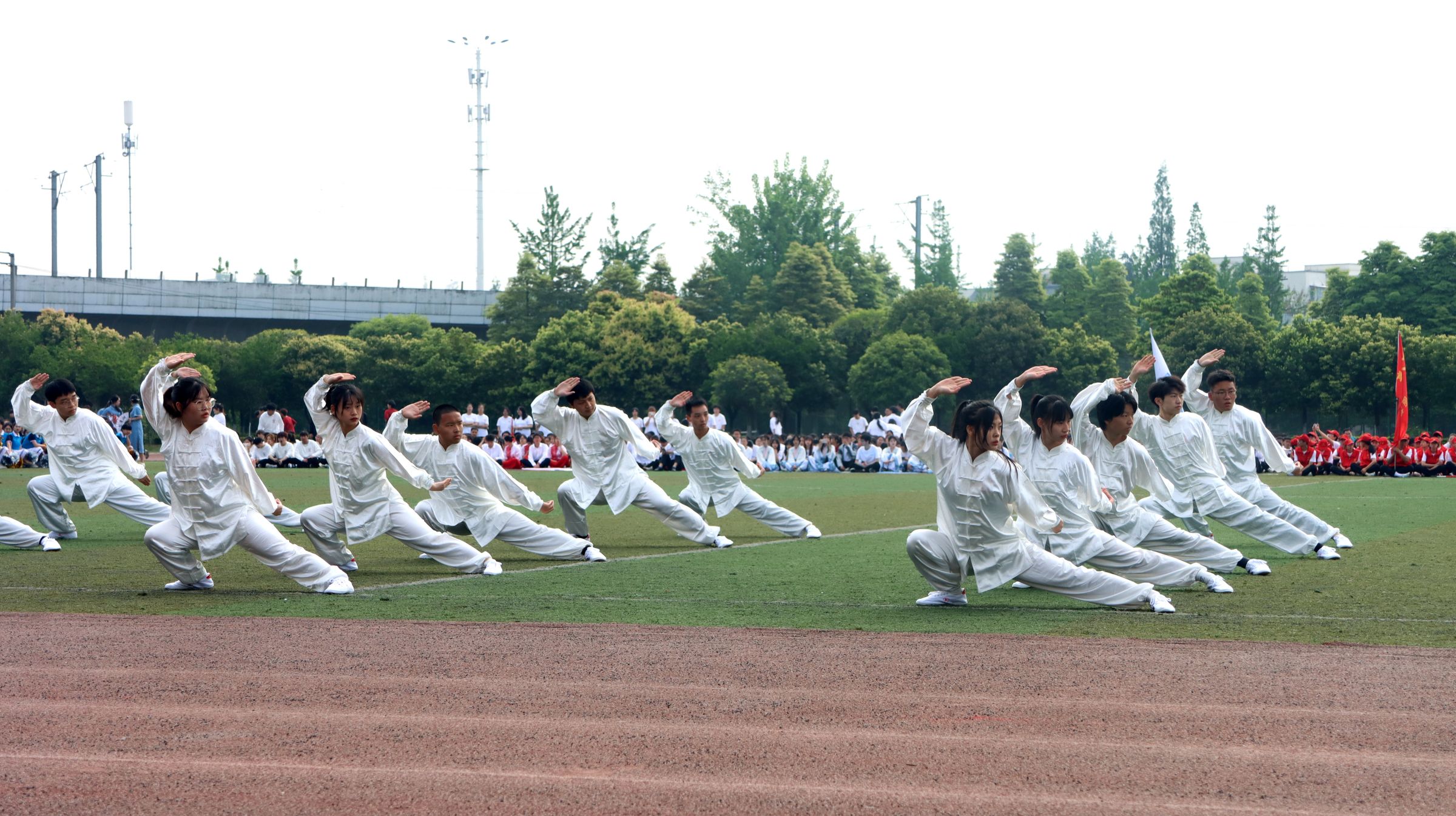 随后,武术表演拉开了团体操展演的序幕。太极拳、长拳表演赢得了师生们的阵阵掌声。各学院也带来了丰富多样的表演,啦啦操、古典舞、现代舞、棍术、擒拿术,在充满活力的音乐声中,同学们灵动的身姿正是多彩飞扬的青春写照。