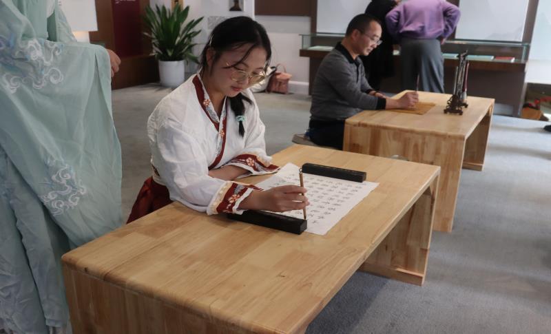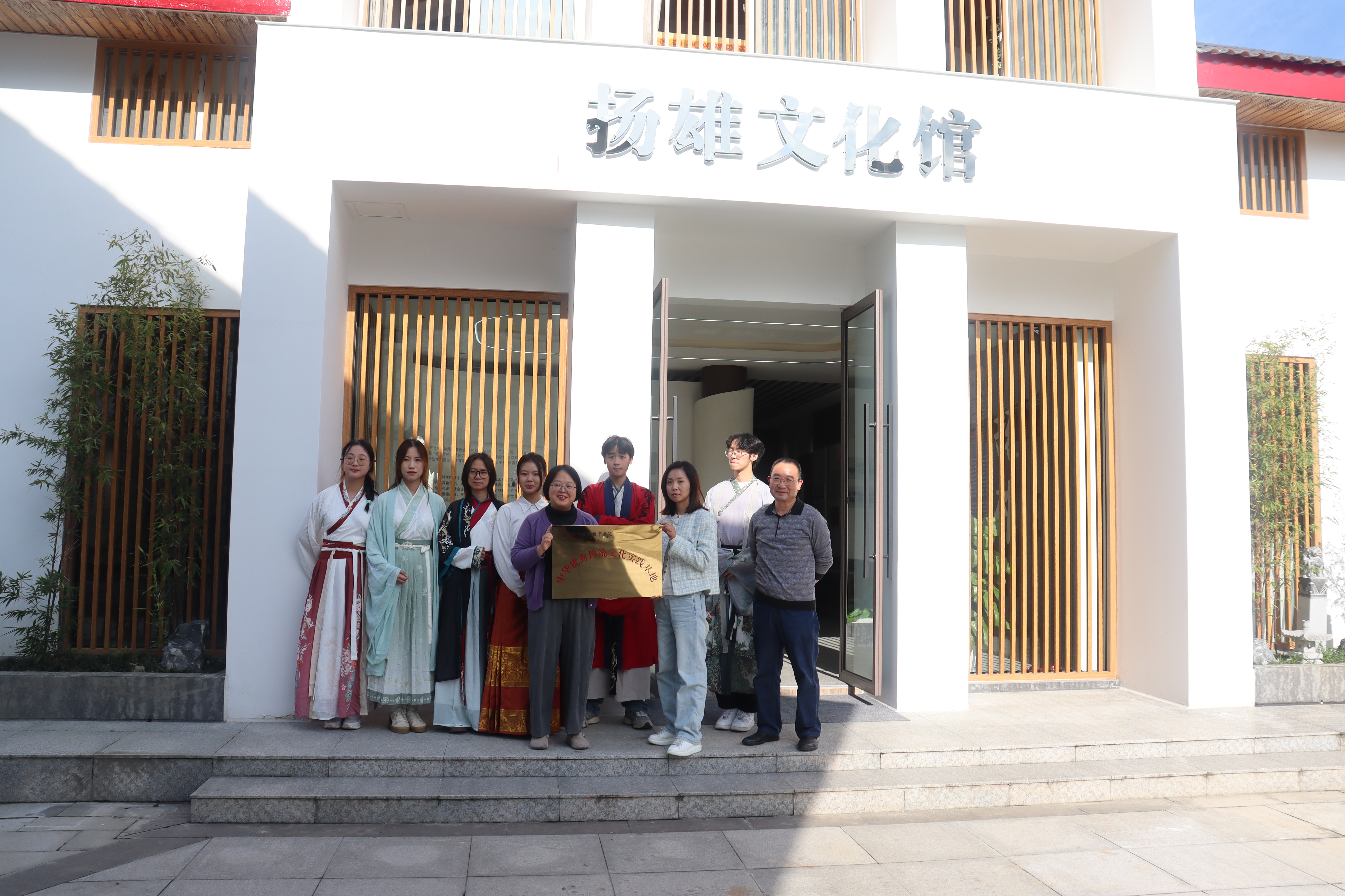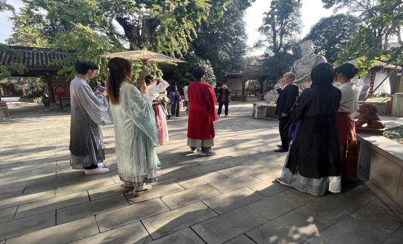 本次研学实践活动中,同学们还身着汉服聆听讲解、即兴挥毫,沉浸式体验圣人的雅趣,感悟扬雄文化的深厚底蕴和中华优秀传统文化的魅力。