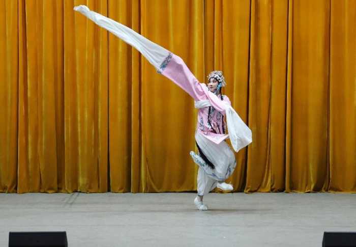 最后,肖教授特邀川剧青年演员表演水袖舞和变脸,衣袖翻卷中尽展戏曲的身韵之美,折扇掩面中尽感“一颜一世界,一转一惊心”的震撼,引发全场师生的连连赞叹和热烈鼓掌。