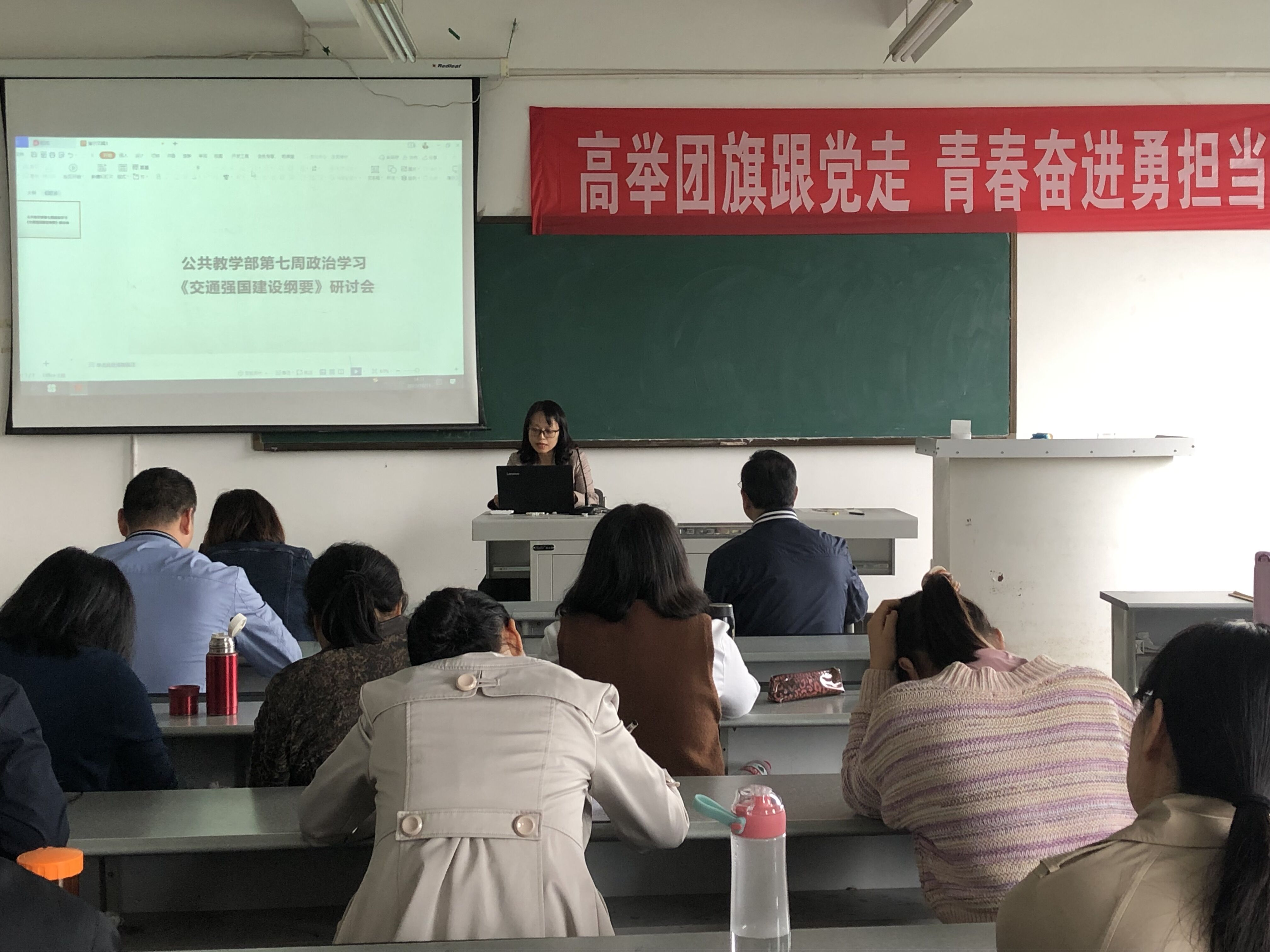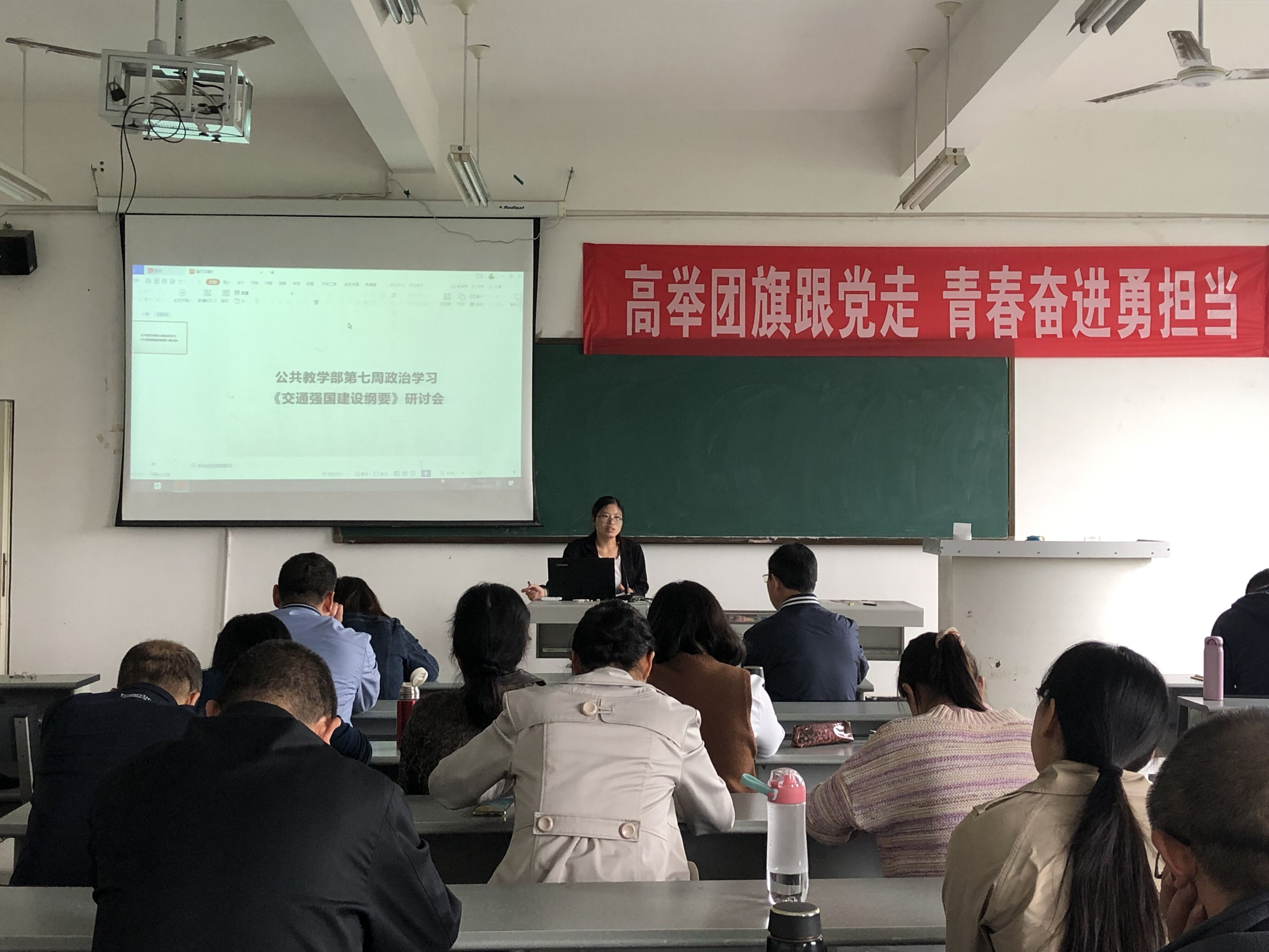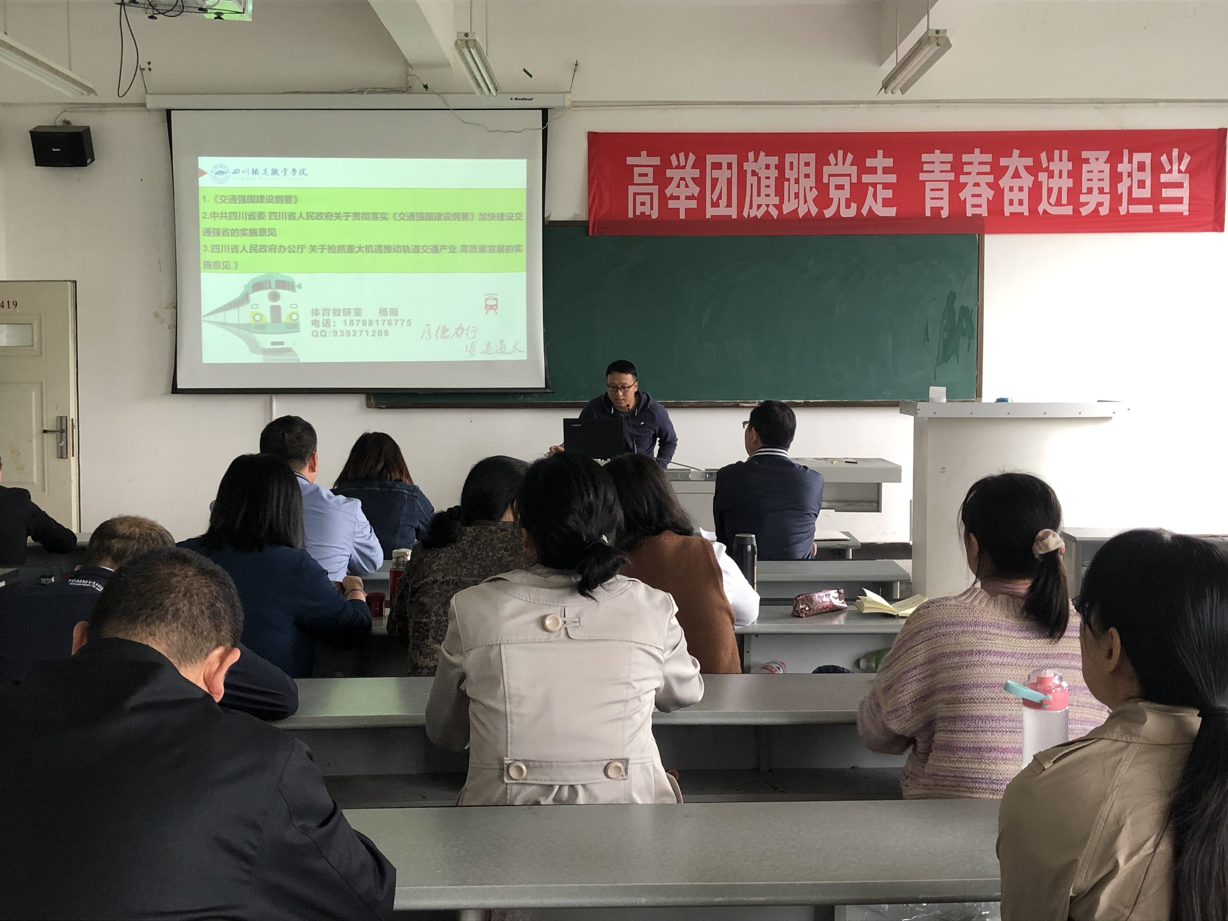 最后副主任杨伦军强调,全体教师首先应有主人翁意识,要主动思考如何抓住机遇提升学校实力以及教师如何提高自身综合素质。其次,部门教师应该研读相关文件,思考国家政策的导向,按照相关要求衔接教育教学工作;要对标优秀职业学院,落实“三教改革”精神。针对不同专业设计课程教学内容,对接职业岗位需求,落实专业人才培养方案要求,推进公共基础课程教学教改工作。要重视精品课程建设,整合课程资源,提高教育教学质量;要着力打造教学团队,加强集体备课,着力培养青年教师;要开展大学生素质拓展活动,助力语言文字推广工作。要深入了解四川省在全国交通发展格局中的战略位势,发挥职业院校服务社会、服务地域经济的重要作用。