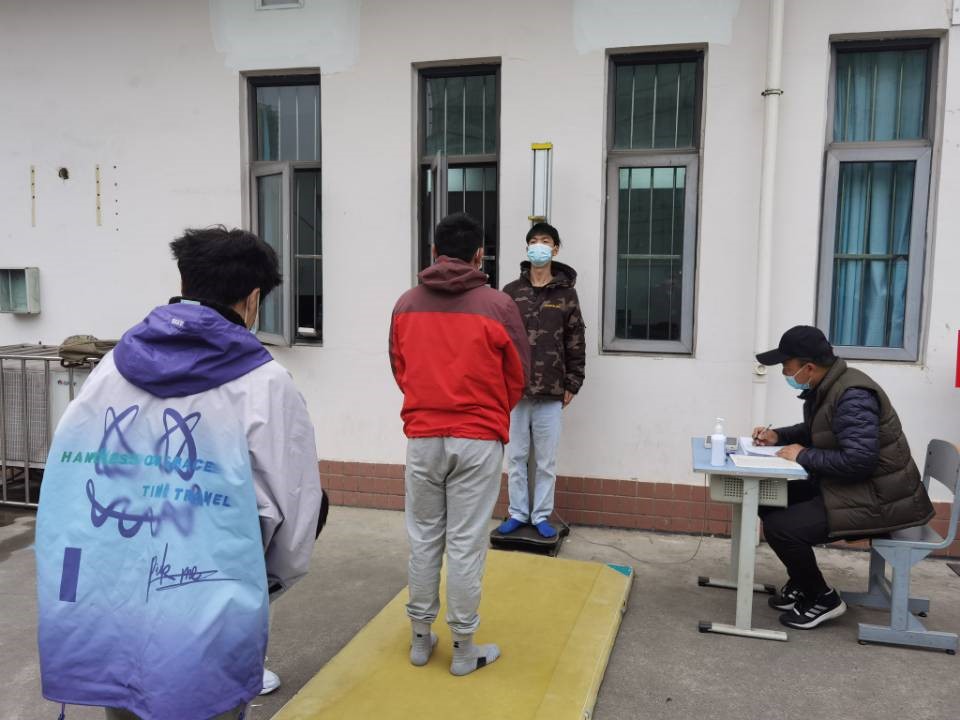 根据国家防疫要求,体育教研室严格做好疫情防疫工作,合理安排全校所有班级测试时间。在测试过程中,提醒学生戴好口罩,保持间距,做好器材消毒、体温检测等工作。