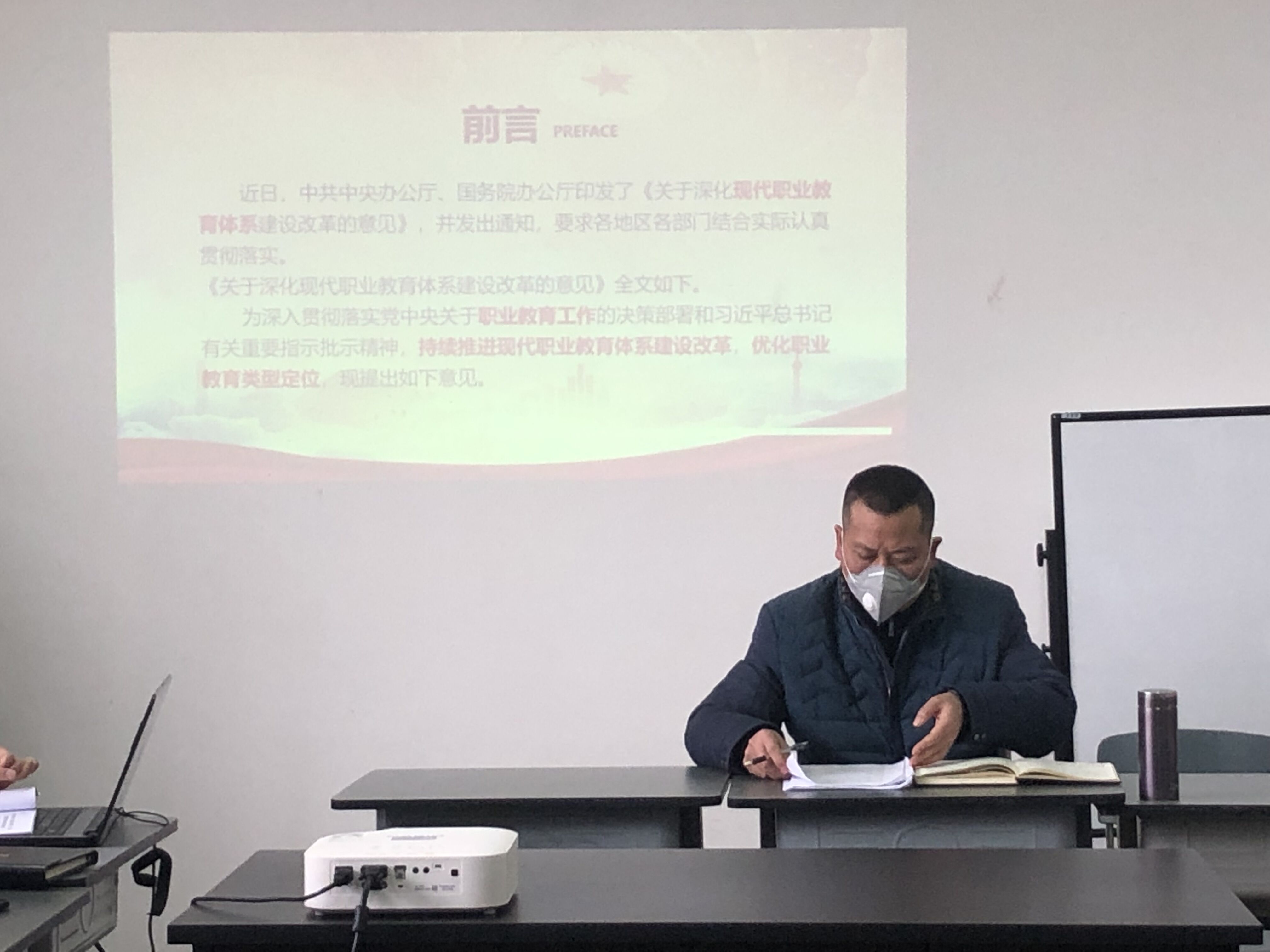 为认真贯彻落实《关于深化现代职业教育体系建设改革的意见》等文件精神,根据《中共伟德国际英国委员会关于深入学习宣传贯彻党的二十大精神工作方案》要求,2023年1月9日,公共教学部组织召开《关于深化现代职业教育体系建设改革的意见》专题学习会暨寒假工作部署会。公共教学部全体教师参加了本次会议。