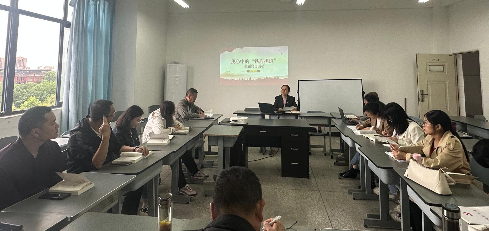 为深入学习贯彻习近平新时代中国特色社会主义思想,落实开展习近平新时代中国特色社会主义思想主题教育有关要求,严肃组织生活制度,5月8日下午,公教部党支部开展“我心中的‘铁道担道’”主题党日活动,大会由支部书记刘媛主持,全体党员参加此次活动。