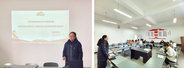 她强调,党史学习要“求实、务实、扎实”,要深刻领悟“学史明理、学史增信、学史崇德、学史力行”的教育内涵。党员教师在学习党史时,要善于总结,要走在前、干在前、悟在前,扎实推进党史学习教育成果转化落地生根。