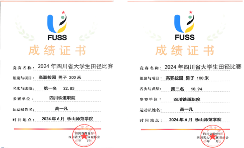6月11日至6月15日,由四川省教育厅主办,四川省大学生体育协会执行、乐山师范学院承办的2024年四川省大学生田径比赛在乐山市体育中心举行。伟德国际代表队成绩斐然,铁道机车22T1班高一凡同学在高职校园组男子200米决赛中勇夺第一名、斩获100米决赛第二名。