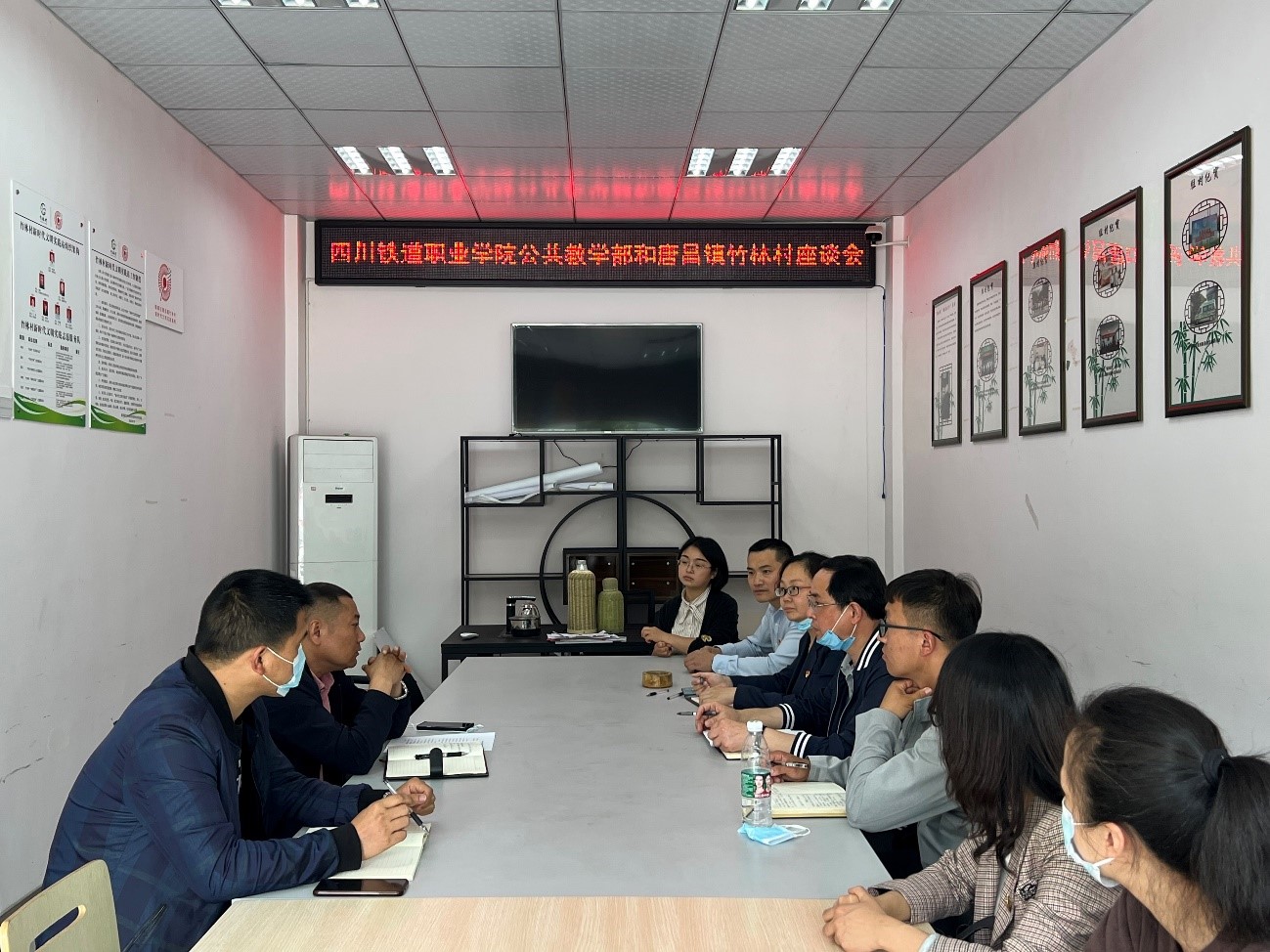会前,双方签署了乡村振兴战略合作协议,并举行了揭牌仪式。会上,双方就有关乡村振兴项目如何做细做实,进行了详细的交流分享。下一步,公共教学部将定期组织教师和学生在竹林村开展文化服务、劳动教育、科普宣传、办公技能、全民健身指导等活动,落实合作协议精神。竹林村委员会也将根据当地需求,组织乡村人员参加相关活动,提供各类活动场地。