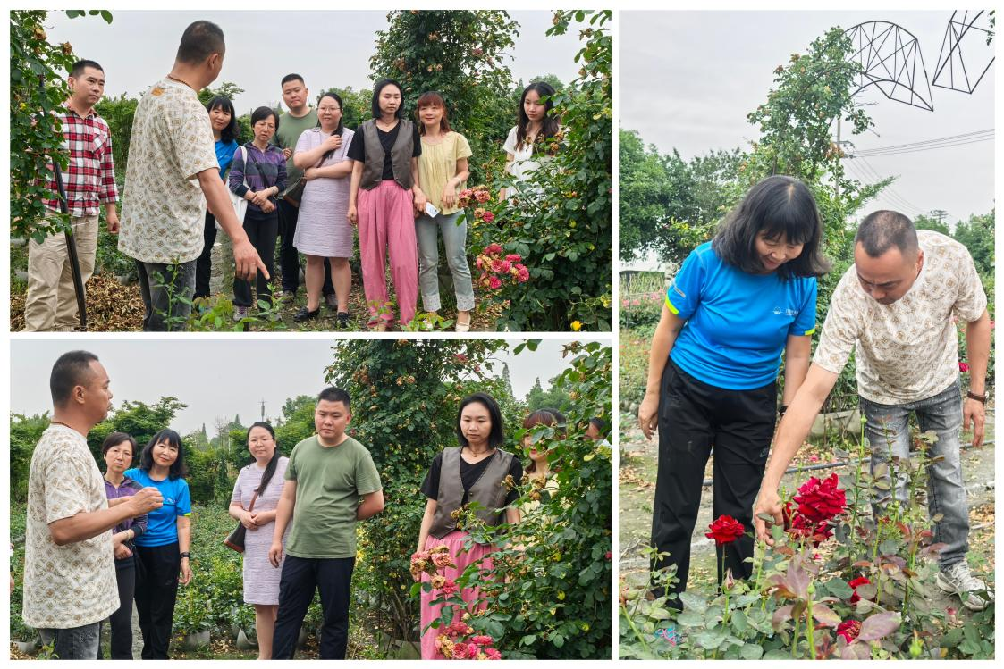 活动伊始,教职工们踏入濂溪村 400 多亩月季花盛放的花海。龙沙宝石的粉嫩、瑞典女王的典雅、红龙的热烈…… 百余种月季在阳光下交织成绚烂锦缎,馥郁花香随风浮动。大家或驻足细赏花瓣纹理,或在花径间合影留念,用镜头定格“人在花中游” 的诗意画面,在盎然生机中卸下心间疲惫。