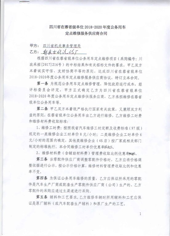 1.四川省在蓉省级单位2018-2020年度公务用车定点维修合同