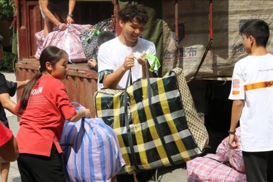 图四、图五:同学们齐心协力搬运行李