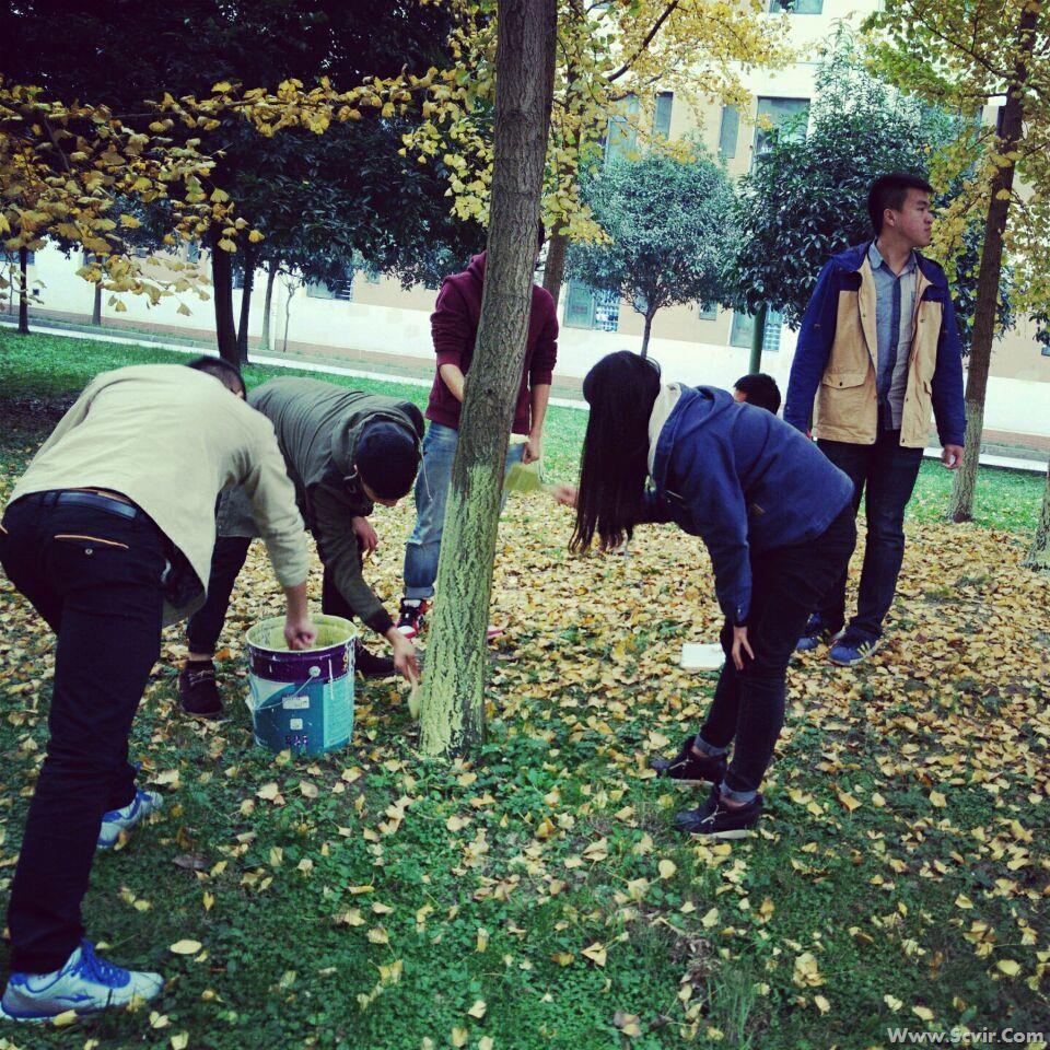 银杏树具有极高的科学、经济、药物和生态利用价值,春日的新绿秋日的金黄,给了我们很多的惊喜,给了校园许多的美丽。但她也十分脆弱,于是在冬日的严寒中,机车车辆系党支部基层小组40余名入党积极分子决定,为银杏树们穿上一件温暖的外衣,感恩银杏树一年四季带给我们的美丽,感恩给了我们美丽校园的学校。通过前期网上搜索、请教林木专家,大家明确了涂刷所使用的材料以及配比,并购买了相应涂料。活动当天,由组织者讲解明确涂刷的正确方法与规定高度,随后入党积极分子便开始分发工具,分组对银杏树进行涂刷。经过同学们的共同努力,于当日下午5点半完成了指定区域银杏树的涂刷,大树们整整齐齐的穿上了新衣。