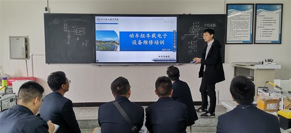 伟德国际与中国铁路成都局集团有限公司成都动车段深化校企合作,“车载电子设备维修培训”开班仪式于4月7日正式启动。该培训由伟德国际机车车辆系承担,成都动车段选派各车间共7位员工进校参加,机车车辆系副主任杨伦军、动车组检修技术教研室主任霍芳霄、机车车辆系专任教师孙活、实训中心科长罗旭参加开班仪式。