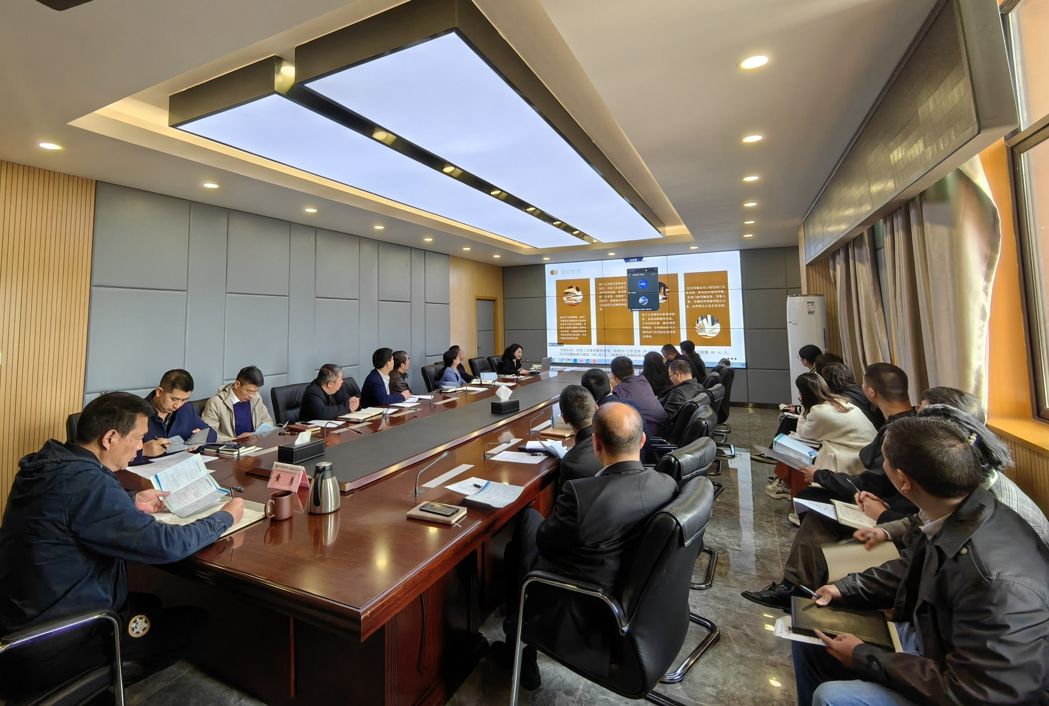 会上,计划财务处汇报了各部门、单位一季度预算执行情况,分析了影响预算执行的因素,存在的主要问题,强调事项;对经费报销过程中常用的政策规定进行了解读,学习了严格控制一般性支出等相关政策文件精神。
