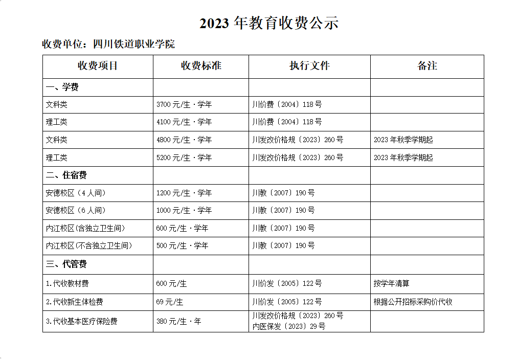 2023年教育收费公示