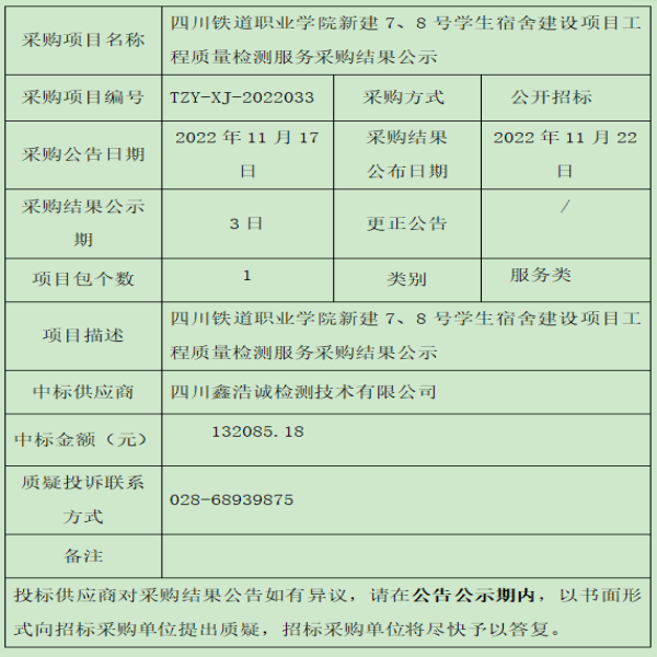 伟德国际英国新建7、8号学生宿舍建设项目工程质量检测服务采购结果公示