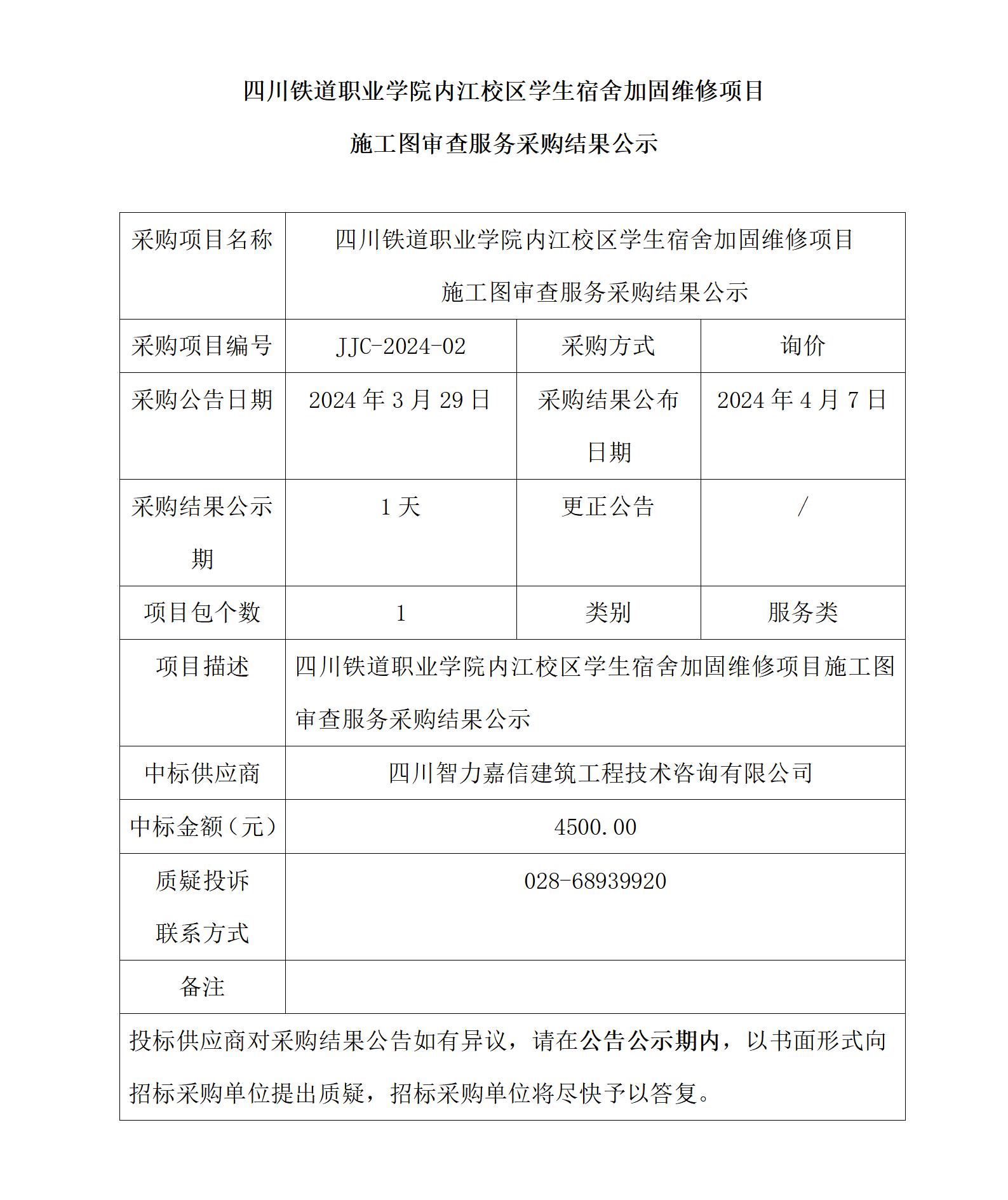 伟德国际英国内江校区学生宿舍加固维修项目施工图审查服务采购结果公示