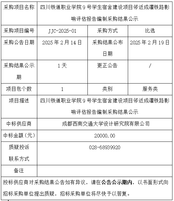 伟德国际英国9号学生宿舍建设项目邻近成灌铁路影响评估报告编制采购结果公示