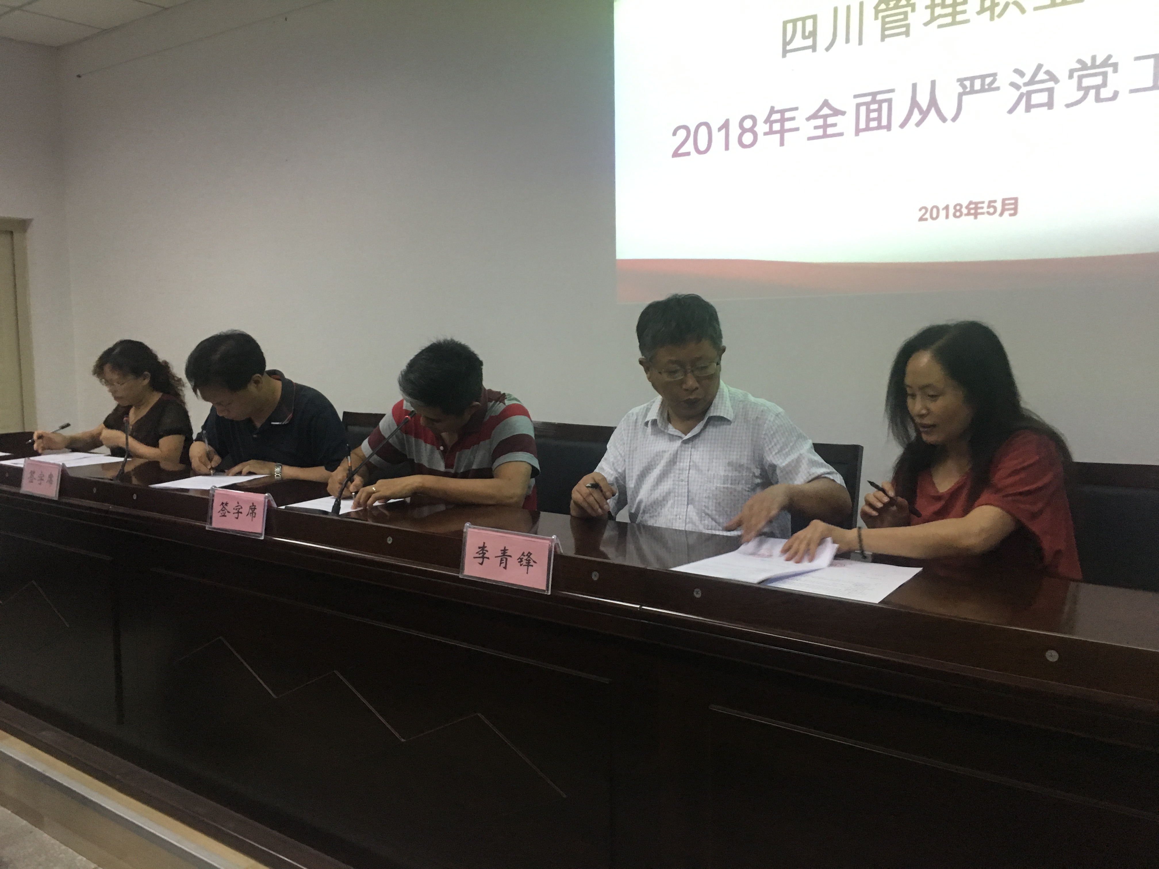 最后,院领导班子成员、各系、各部门分层次签订了2018年四川管理职业学院党风廉政建设责任书。