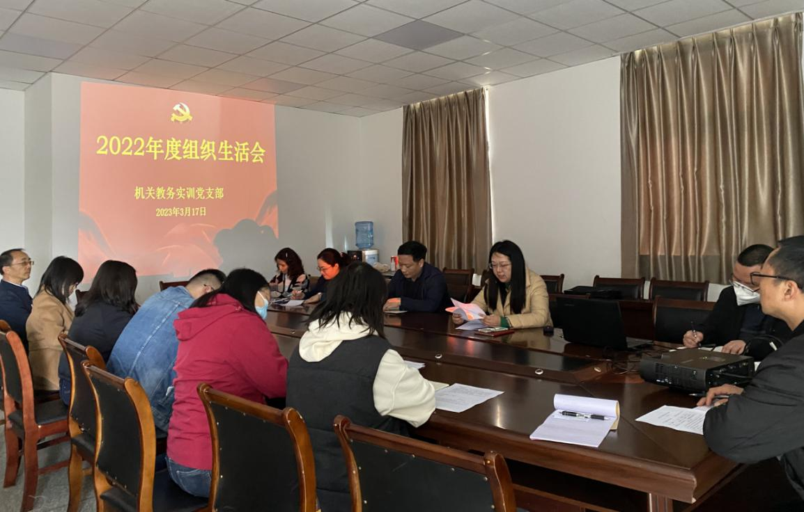 2023年3月17日,机关教务实训党支部在行政楼第三会议室组织召开了2022年度基层党组织组织生活会并开展了党员的民主评议。党支部书记陈风玲主持会议,黄恩兴副校长以及支部全体党员参加了此次会议。