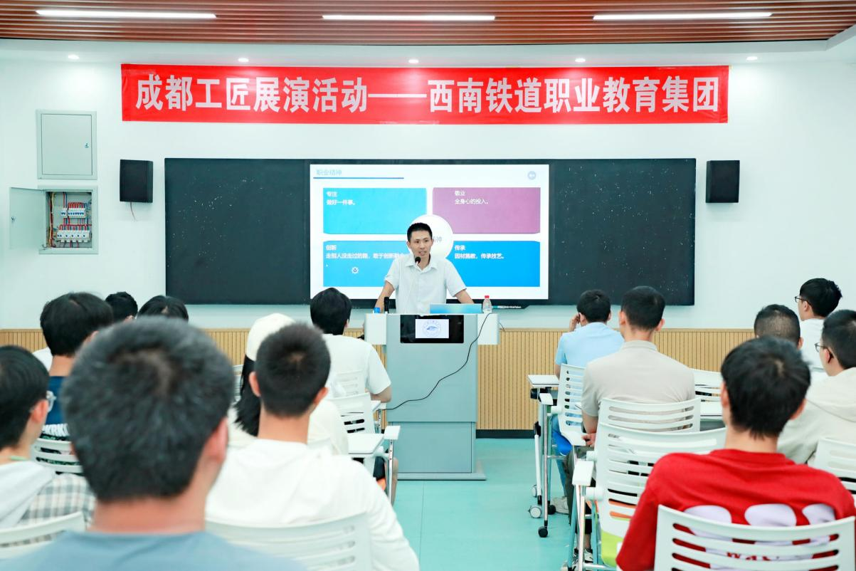 下午,“成都工匠”技术赋能展演活动在各分会场举行,王荣、杨启义、袁剑菲、邹景军4位“成都工匠”走进校园作交流分享,企业一线工匠、职业学校教师“碰头”,匠人匠心,青春筑梦,点亮职教学子的“大国工匠”梦。