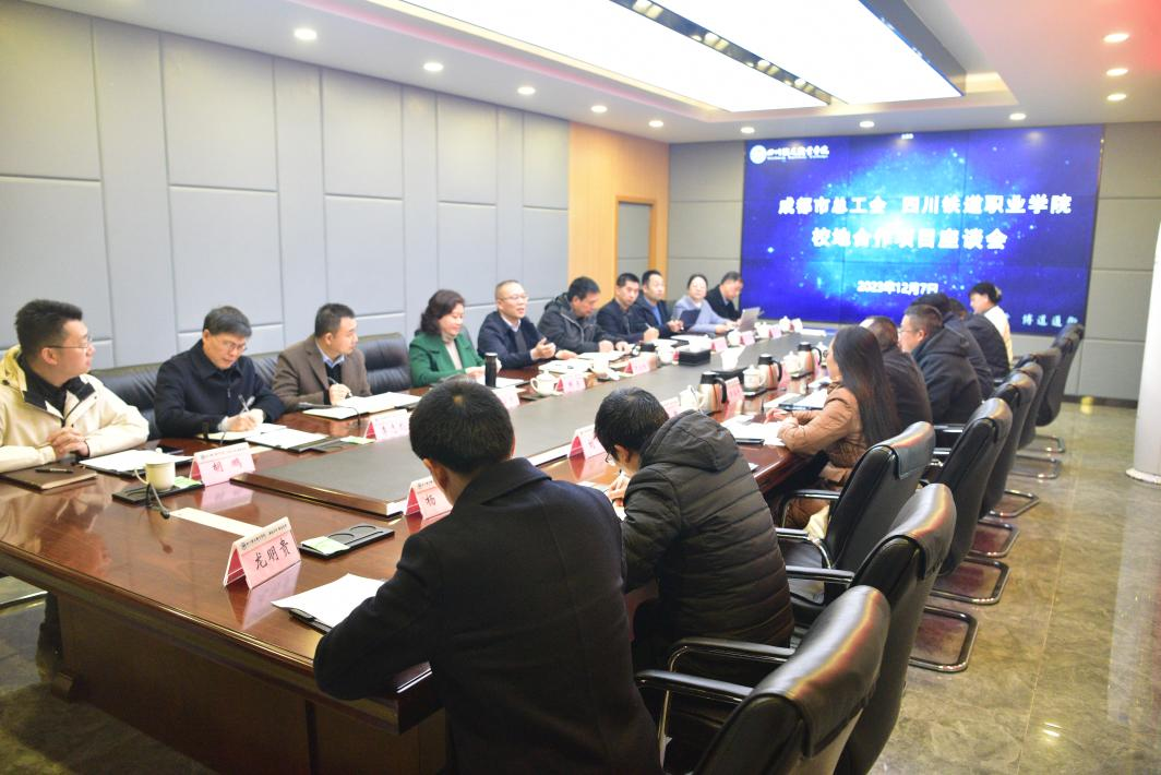 12月7日上午,成都市总工会党组成员、副主席方启军、资产部部长罗晨等一行到访学校,就深化双方合作共建的成都工匠学院轨道交通产业分院年度工作情况及进一步工作打算进行沟通交流。学校党委书记贺兆轩、校长赖芳、副校长黄勇出席座谈。