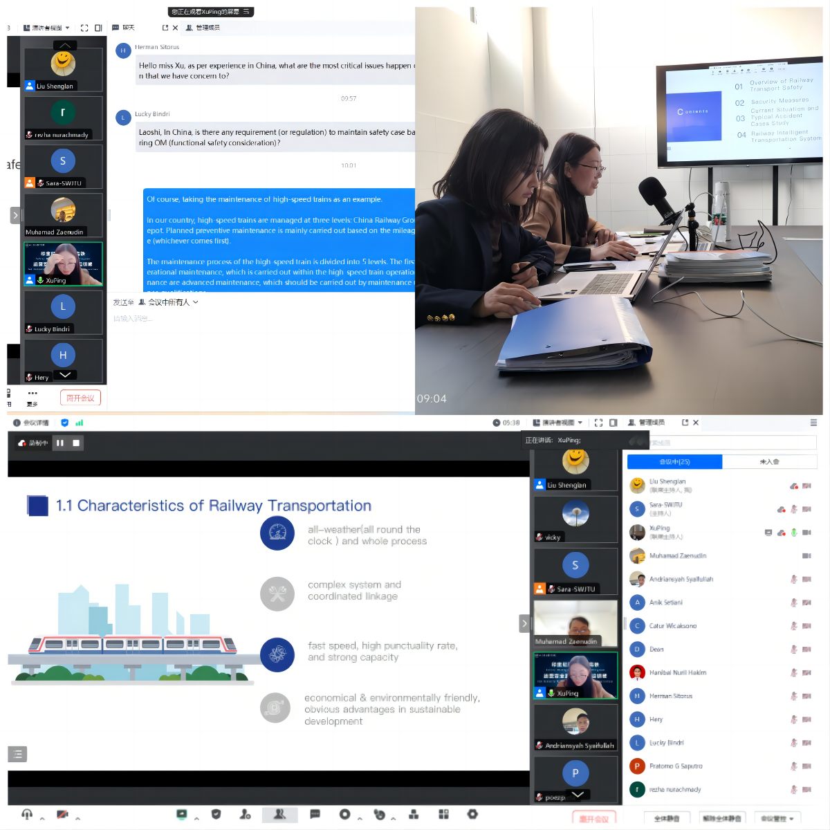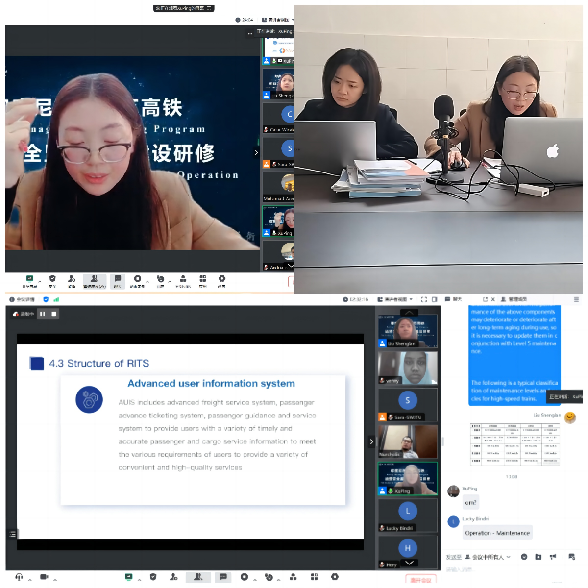 12月7日上午,伟德国际教师刘盛蓝、徐萍受邀为西南交大主办的印度尼西亚雅万高铁运营安全监督能力建设研修班讲授《高铁运营安全管理》课程。此次研修班主要针对印度尼西亚交通部铁路局、铁路局安全处、印度尼西亚铁路理工学院的官员开展,旨在提升印尼雅万高铁运营安全及管理效率,加强中印尼两国在高速铁路领域的交流与合作。