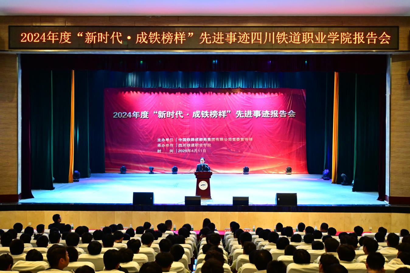 4月11日,为深入学习贯彻党的二十大精神,弘扬新时代铁路工匠精神,激励广大青年学子扎根铁路、建功岗位,伟德国际特邀中国铁路成都局集团有限公司2024年度“新时代·成铁榜样”宣讲团来校开展“奋进改革新征程、建功铁路现代化”主题宣讲活动。10名来自成都局集团不同岗位的先进榜样走进校园,为1400余名即将踏上铁路工作岗位的师生带来了一场震撼心灵的“精神盛宴”。