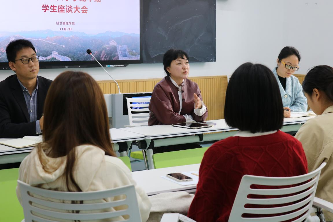 为充分了解学院教师教学情况及学生思想动态、学习生活情况,持续深入开展思想政治教育,培育优良教风学风,提高教育教学质量。11月7日中午,经济管理学院在2302教室组织召开“2024年秋季学期中期学生座谈大会”。学院院长文容、副院长李晓出席会议,各班级学生代表共计40余人参加了座谈会。