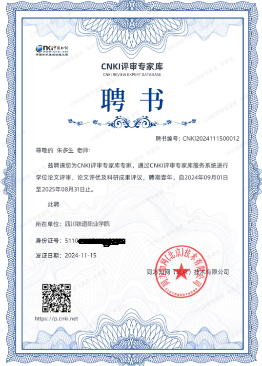 朱多生老师长期从事旅游管理、川菜文化、茶艺文化领域相关研究,取得了较为丰富的科研成果。此次再次受聘为CNKI评审专家库专家,既是对其学术能力和专业水平的肯定,也是对经济管理学院以科研服务区域经济发展、促进郫都区川菜产业发展研究能力的认可,对提升学院在人文社科领域的影响力和美誉度具有积极意义。