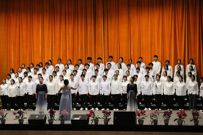 比赛现场,各参赛队伍以饱满的热情、整齐的队形、优美的歌声和精彩的表演,展现了经济管理学院学子的青春风采。他们用激昂的歌声,唱响了新时代的红色主旋律,抒发了对党和国家的热爱之情。每支队伍的演唱都各具特色,有的班级融入了朗诵、书法、钢琴伴奏等元素,提高了艺术感染力;有的班级则采用了领唱、轮唱、多声部等演唱形式,增强了歌曲的表现力。一首首经典歌曲如《我和我的祖国》《如愿》《少年中国说》等,在同学们的深情演绎下,焕发出新的活力。大礼堂内掌声雷动,现场观众被参赛队伍的精湛表演深深打动。